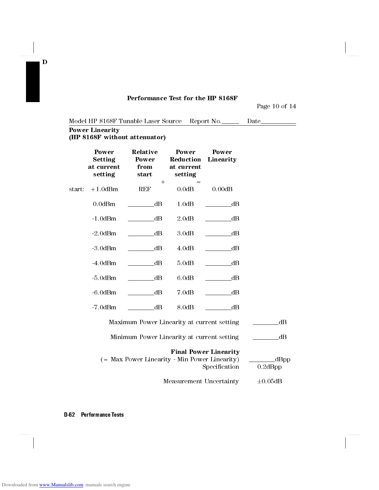 Model HP 8168F Tunable Laser Source Report No. Date
