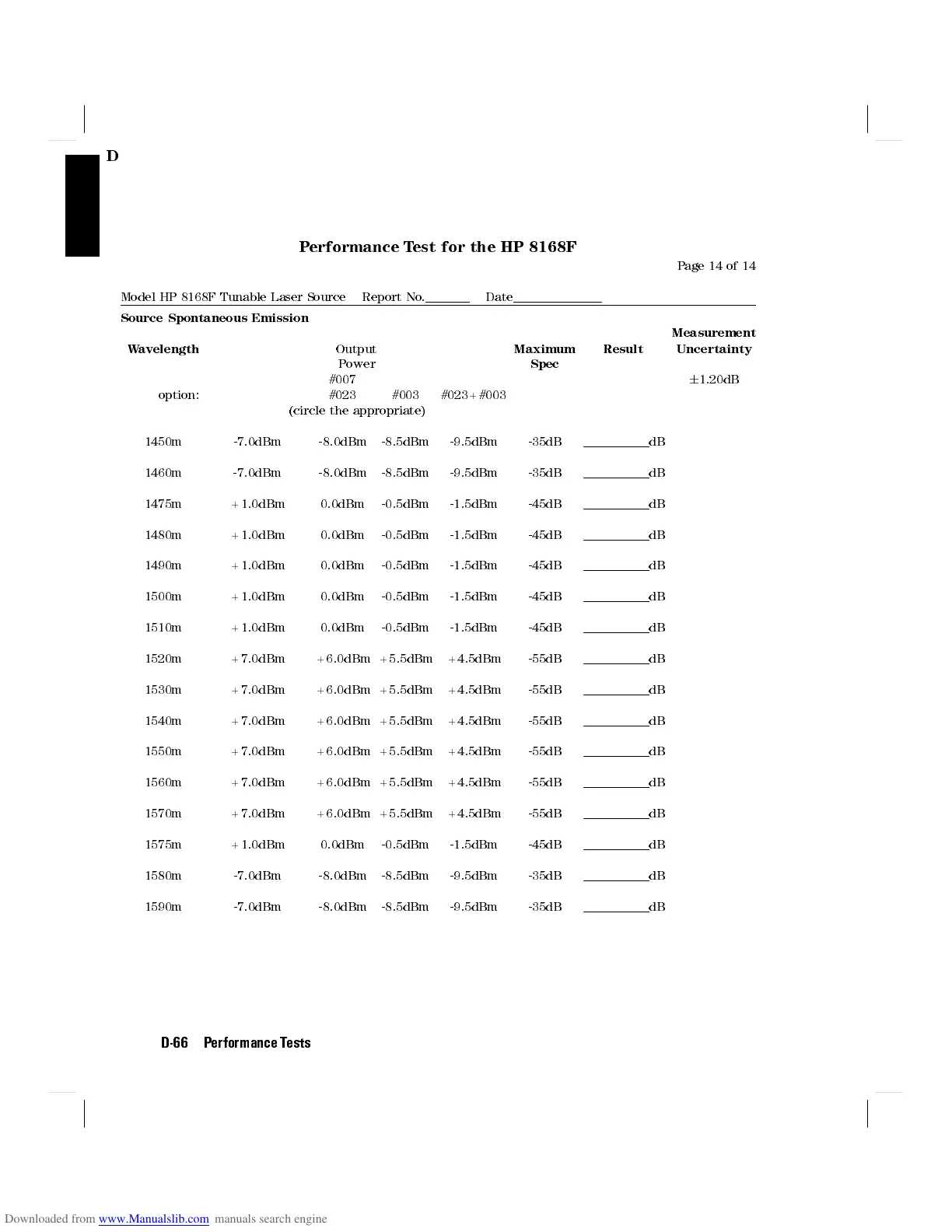 Model HP 8168F Tunable Laser Source Report No. Date