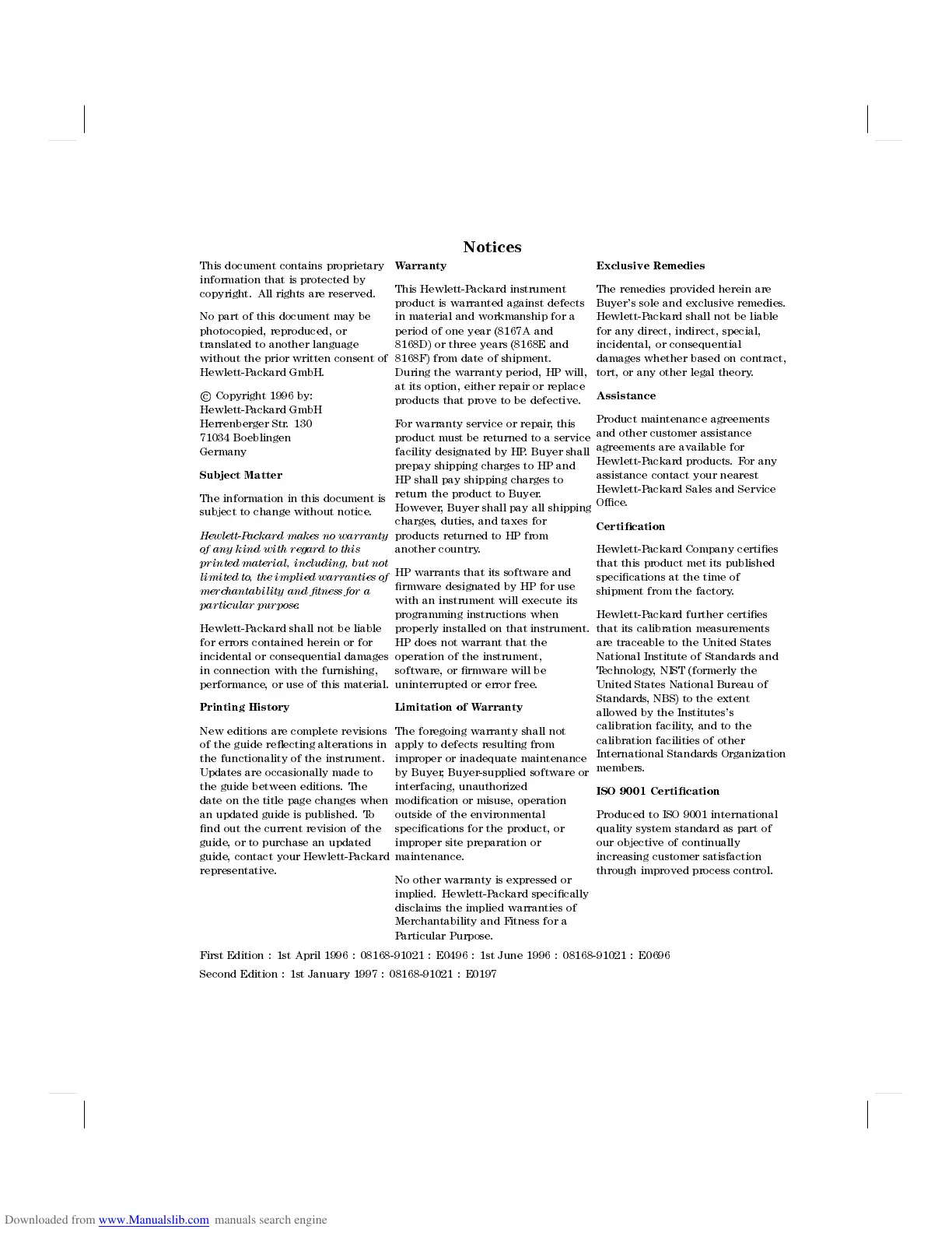 First Edition : 1st April 1996 : 08168-91021 : E0496 : 1st June 1996 : 08168-91021 : E0696