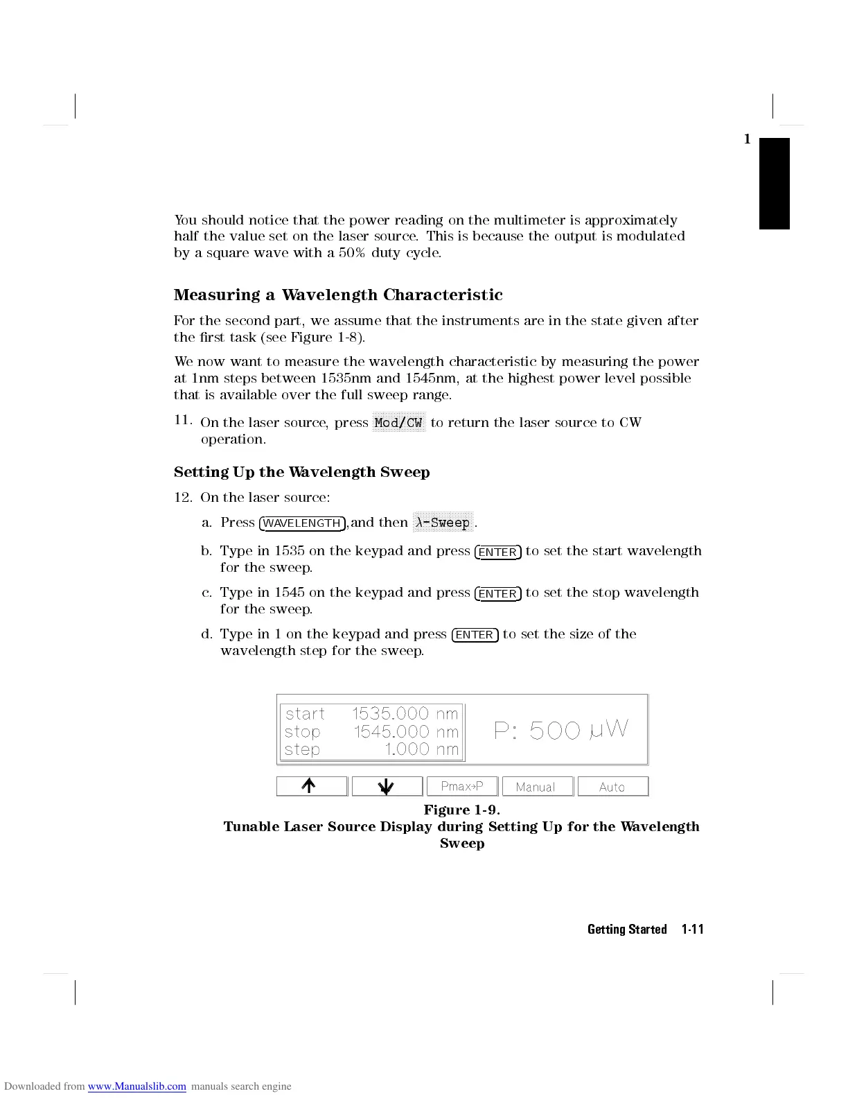 Tunable Laser Source Display during Setting Up for the Wavelength