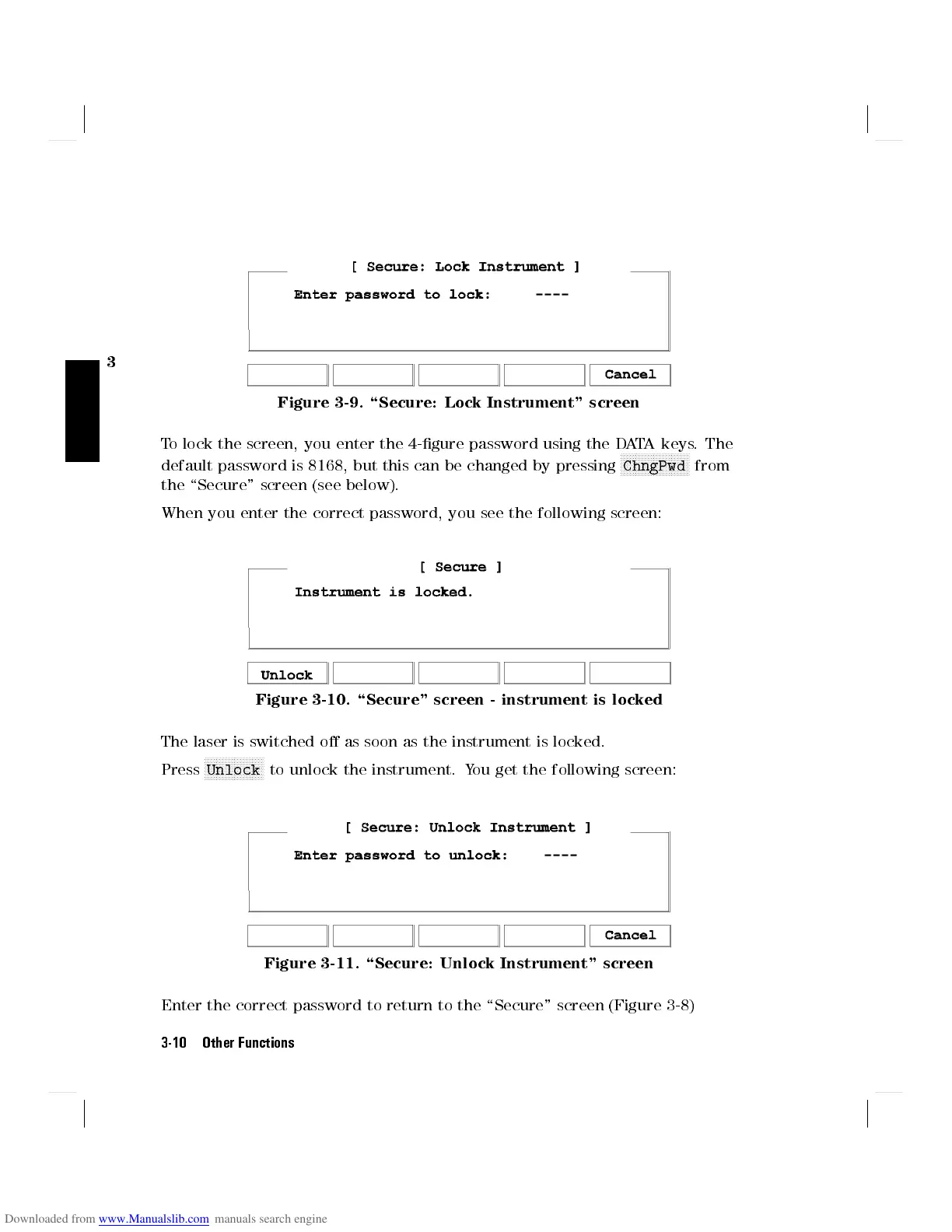 Enter the correct password to return to the \Secure" screen (Figure 3-8)