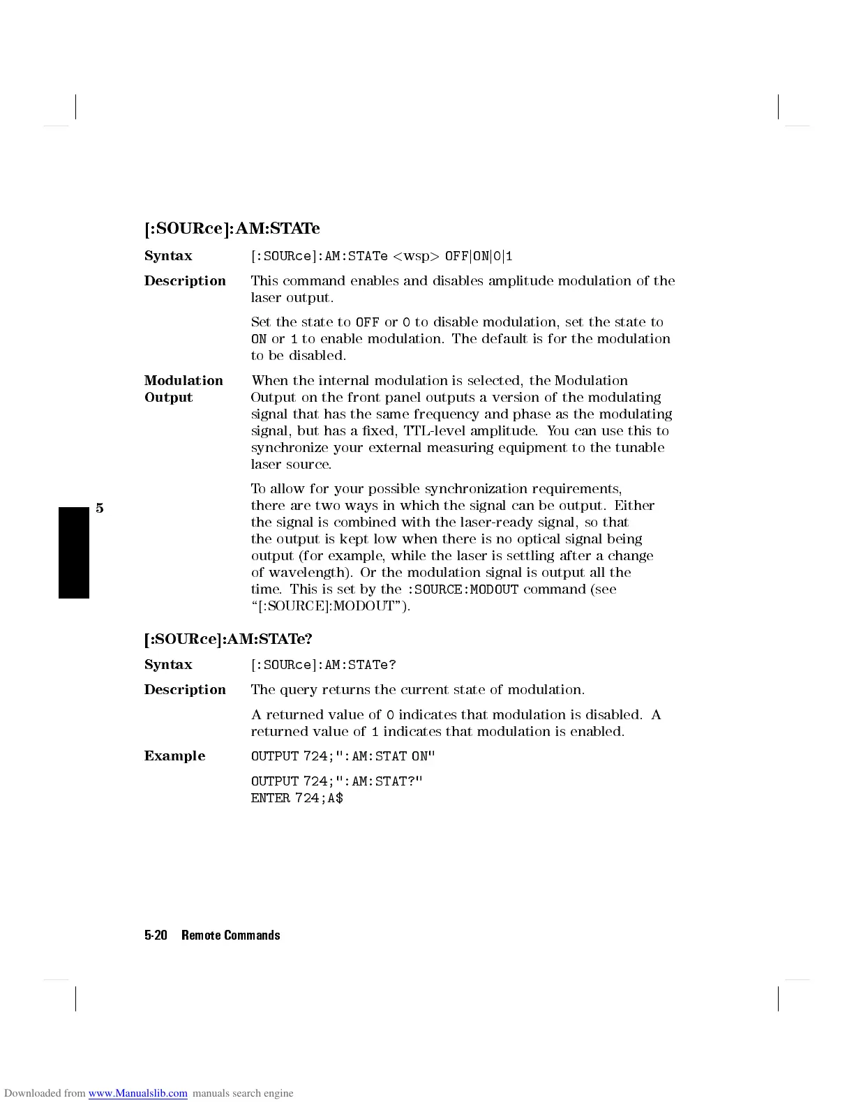 OUTPUT 724;":AM:STAT ON"