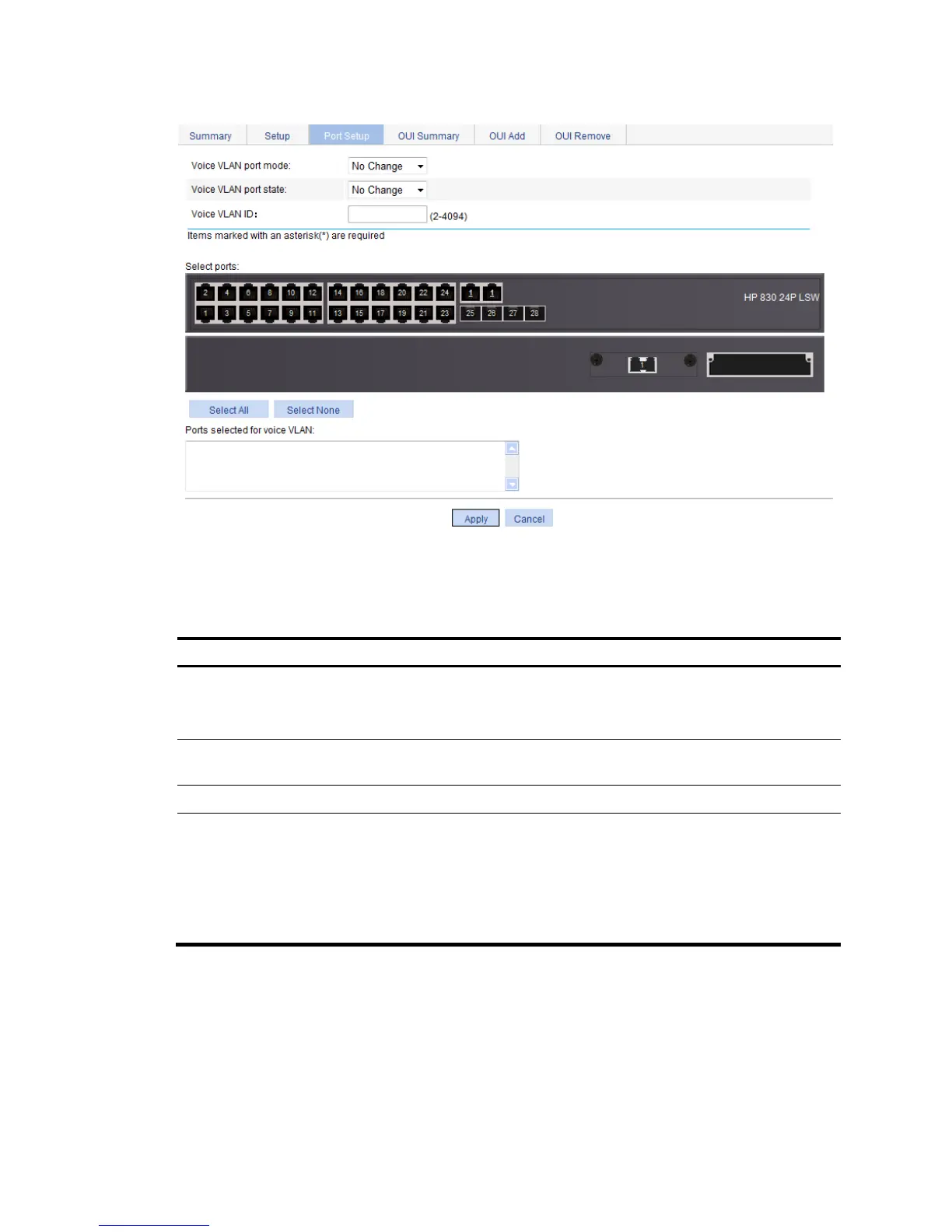 selected ports will be displayed in the Ports selected for voice VLAN field.