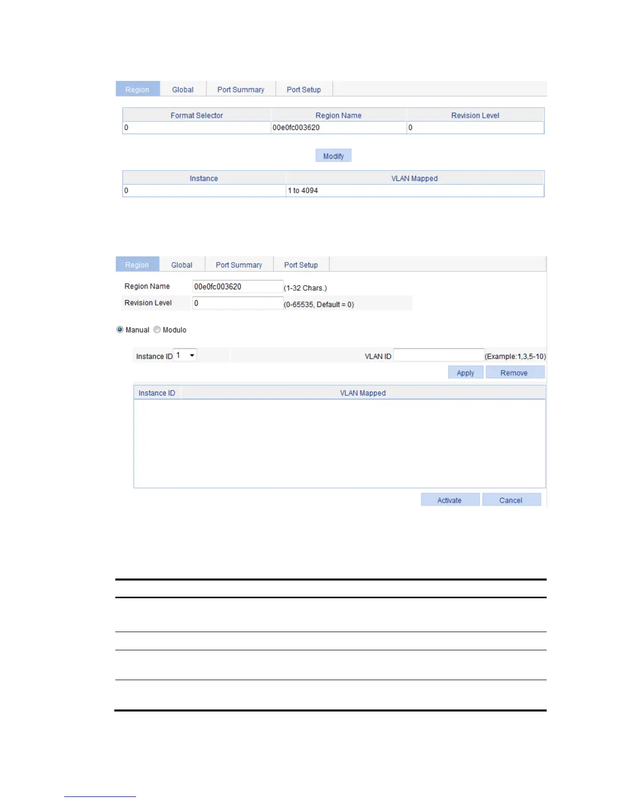 3. Configure the MST region information as described in Table 55, and click Apply.