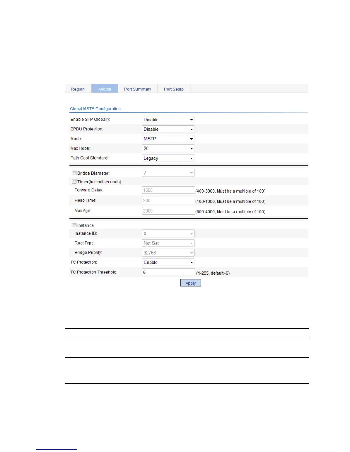 2. Click the Global tab to enter the page for configuring MSTP globally.