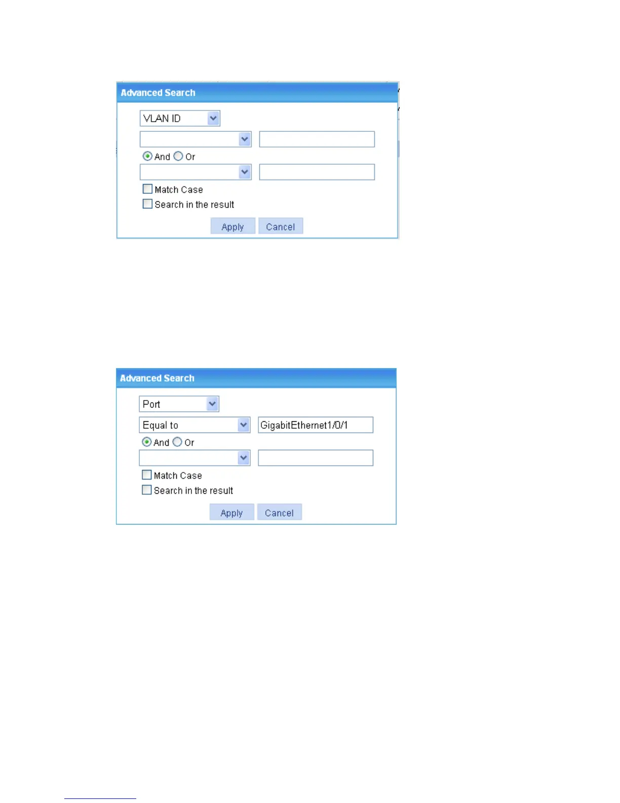 1. Click the Advanced Search link, specify the search criteria on the advanced search page as shown