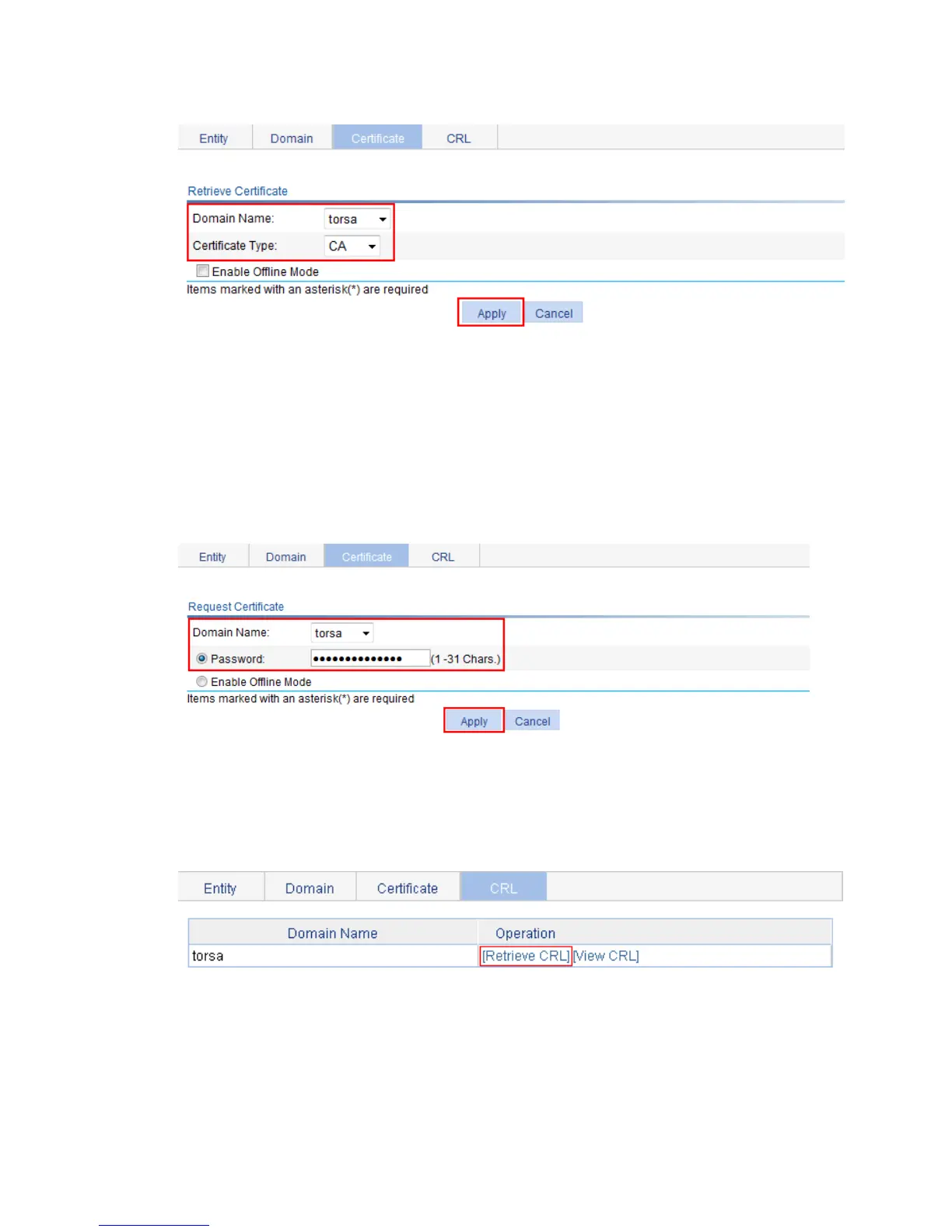 b. Click Retrieve CRL of the PKI domain of torsa.