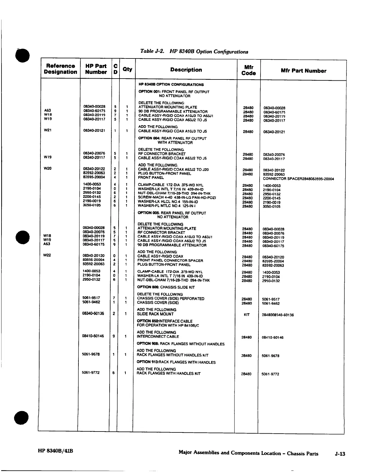 8340B OPTION CONFIGURATIONS