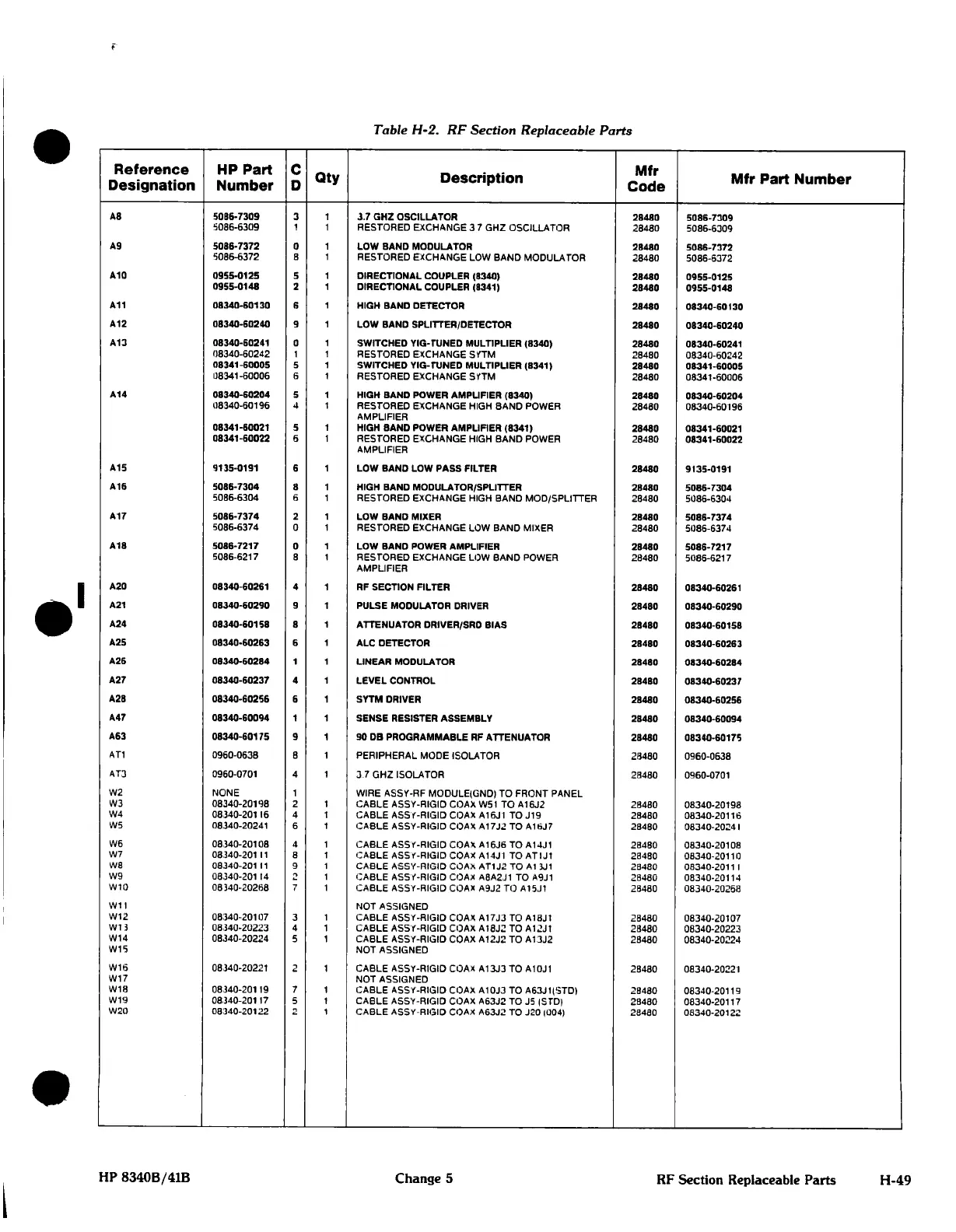 Section Replaceable Parts