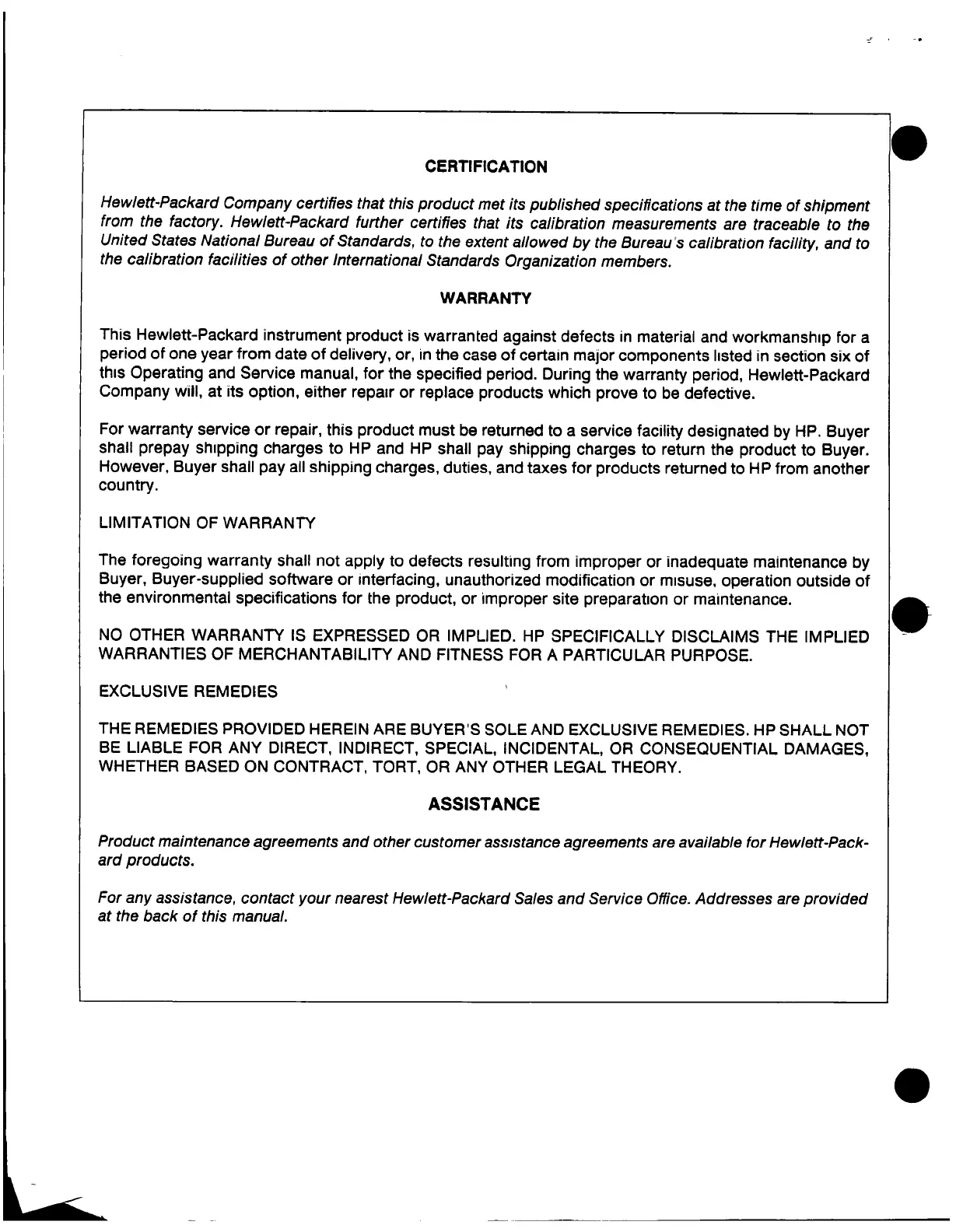 HP SHALL NOT