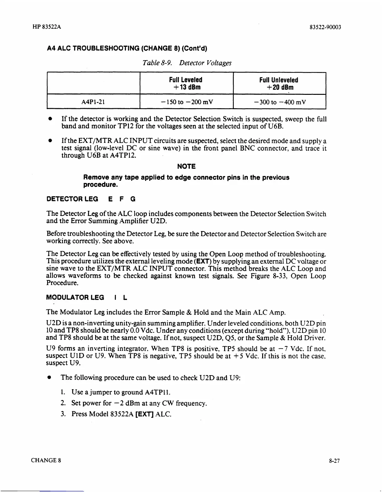 The Detector Leg can be effectively tested by using the Open Loop method of troubleshooting.