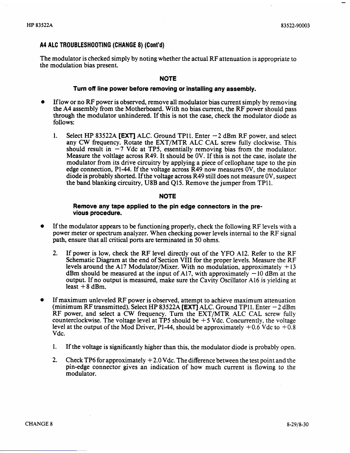 the A4 assembly from the Motherboard. With no bias current, the RF power should pass