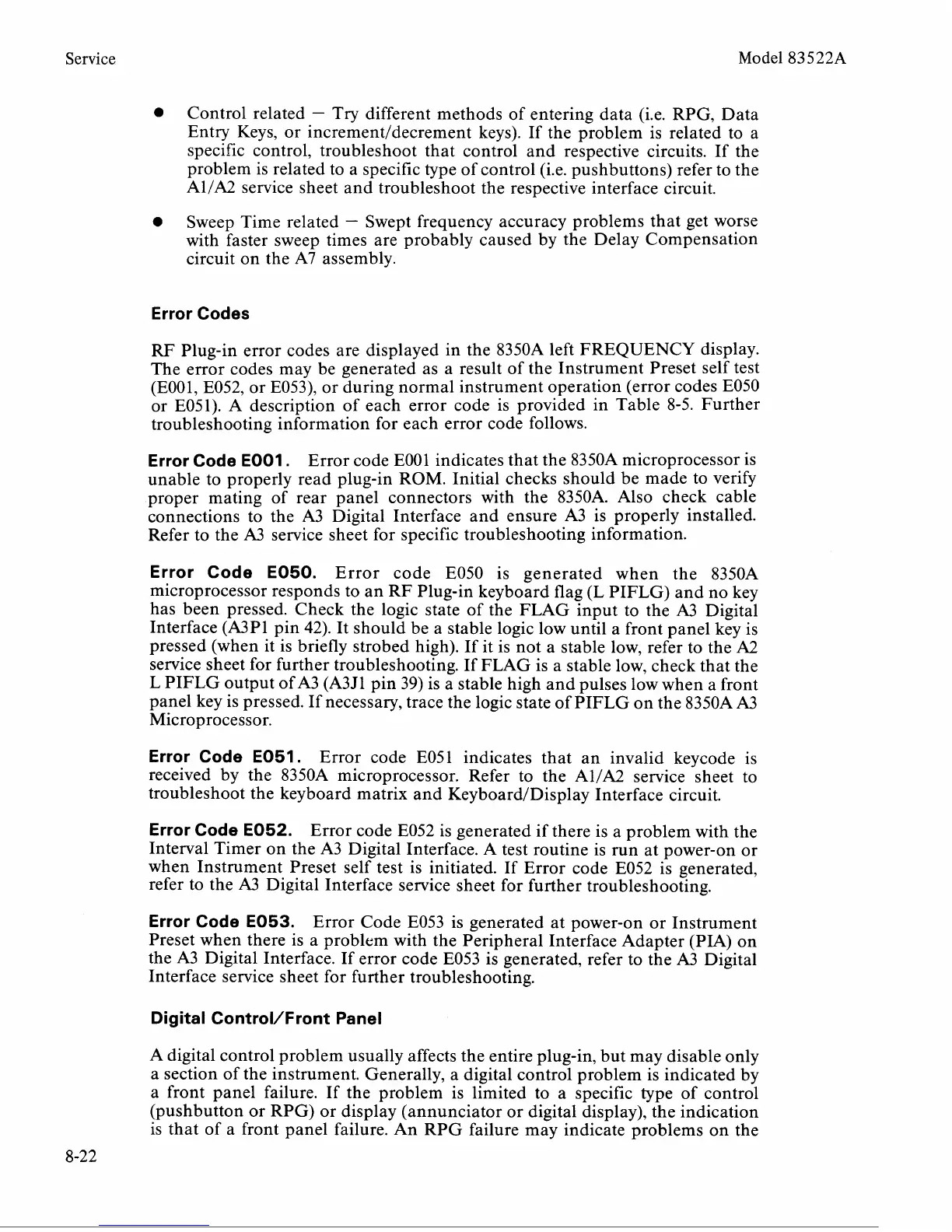 E051). A description of each error code is provided in Table 8-5. Further