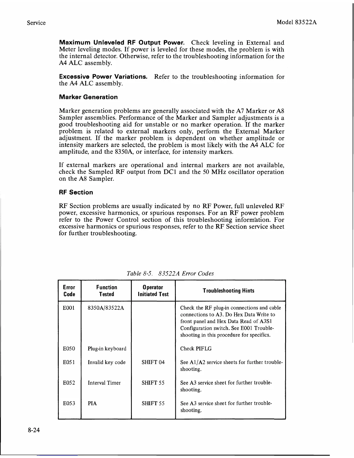 Table 8-5. 83522A Error Codes