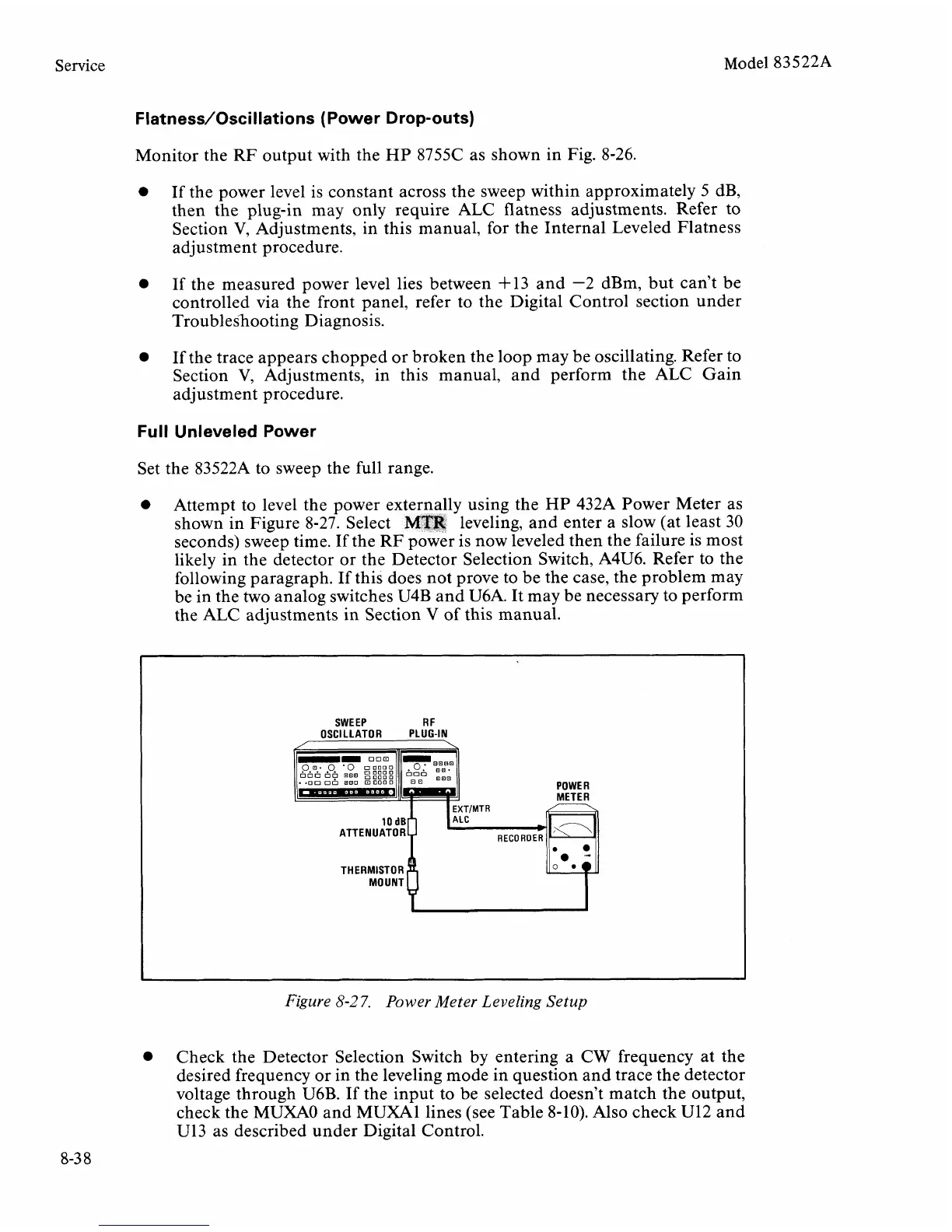 desired frequency or in the leveling mode in question and trace the detector