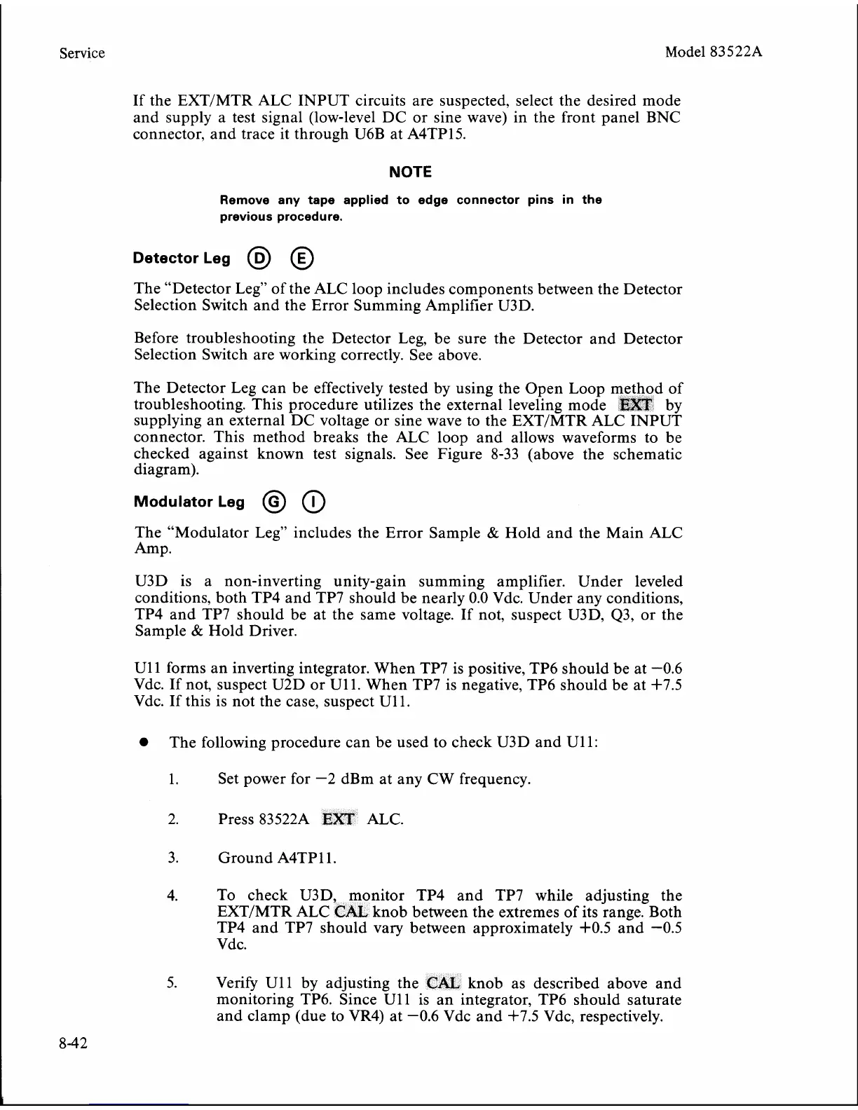 If the EXTIMTR ALC INPUT circuits are suspected, select the desired mode