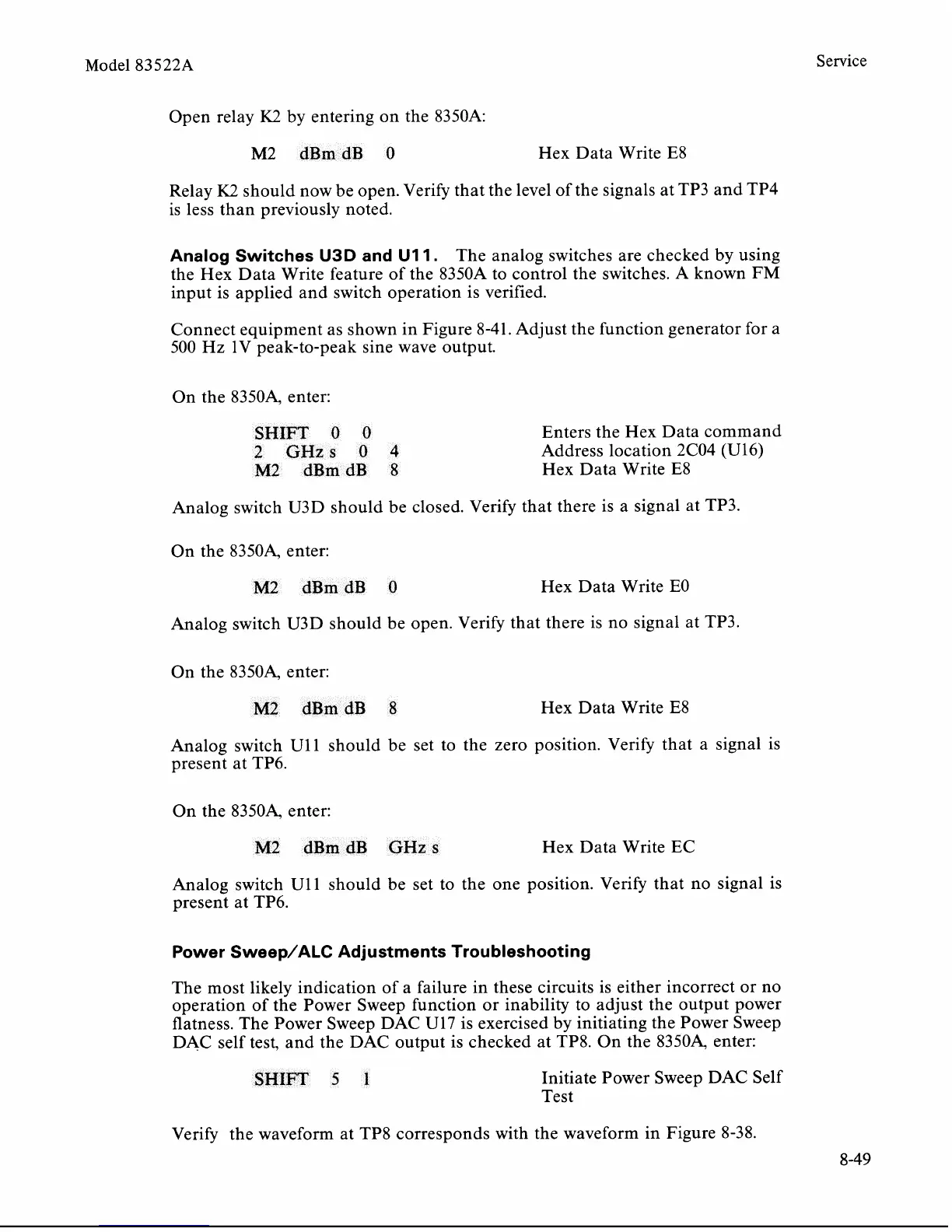 flatness. The Power Sweep DAC U17 is exercised by initiating the Power Sweep
