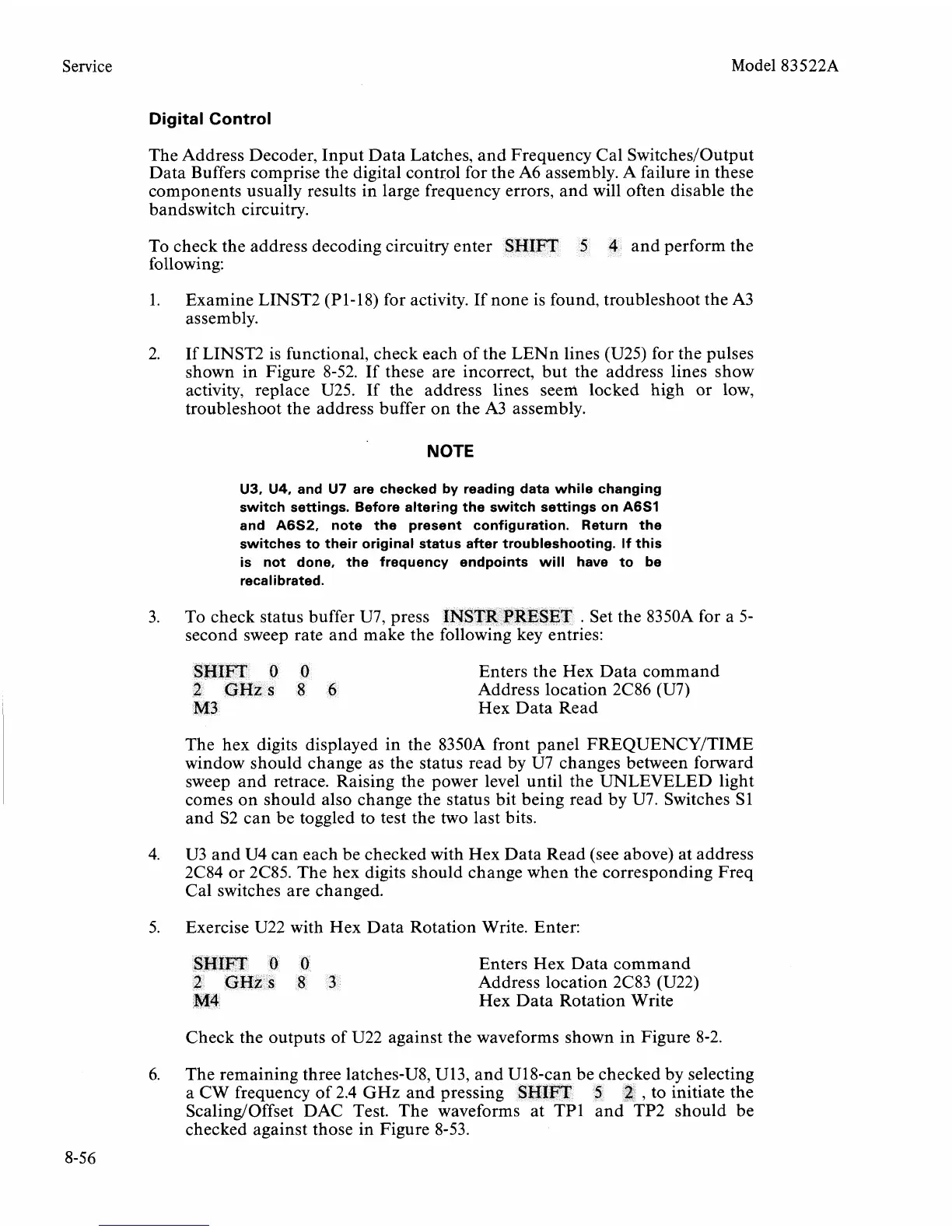 Check the outputs of U22 against the waveforms shown in Figure 8-2.