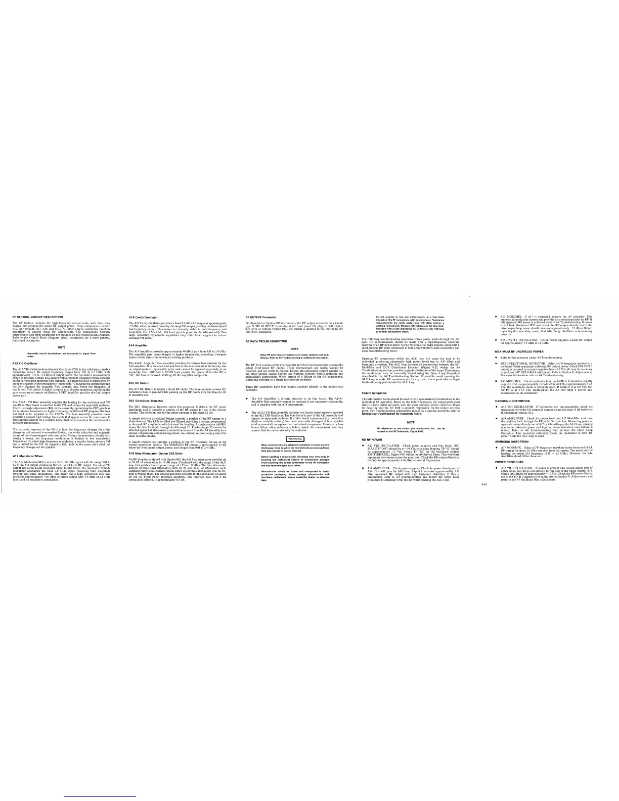 The RF Section includes the high-frequency microcircuits, with their bias