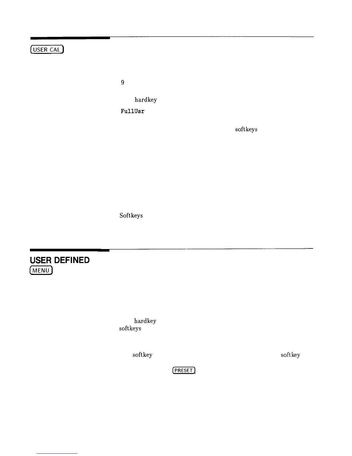 accesses the user calibration softkeys.