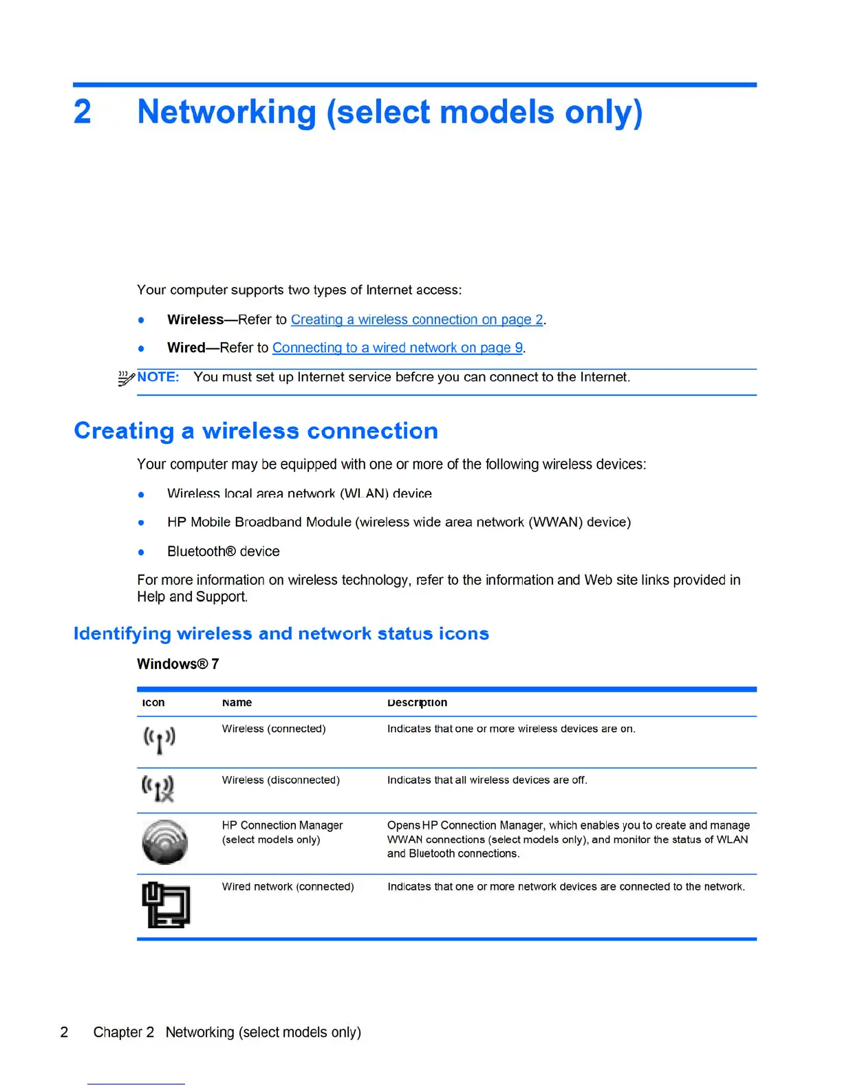 HP 8460p - 2 Networking (Select Models); Creating and Managing Wireless Connections