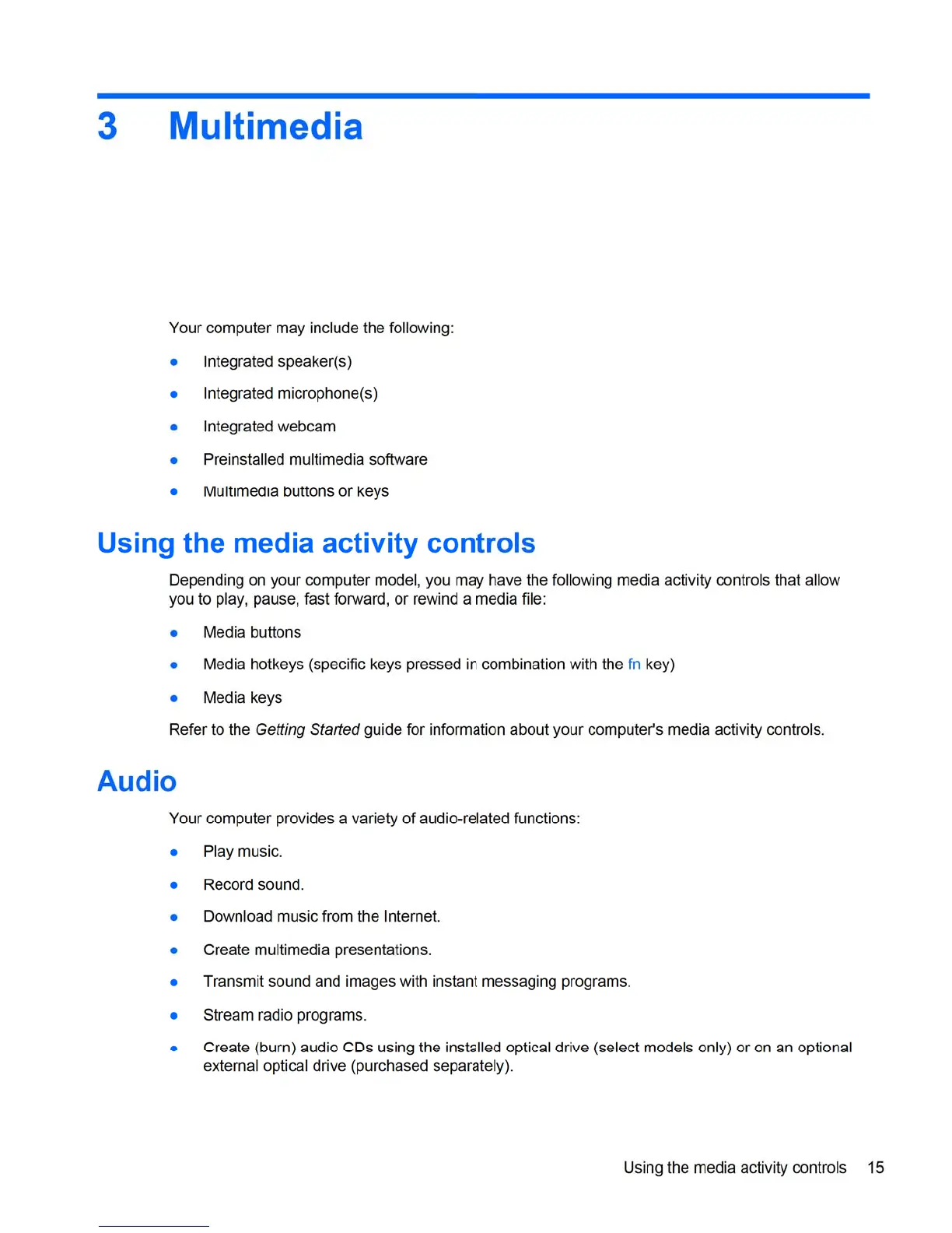 HP 8460p - Multimedia; Using the Media Activity Controls; Audio