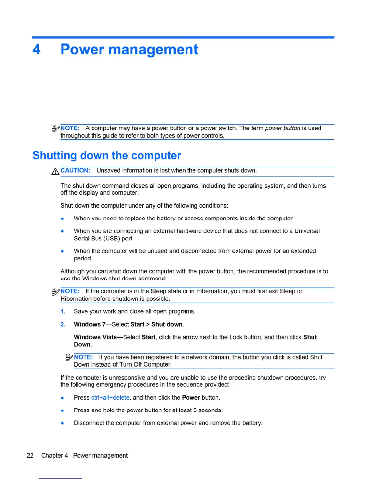 HP 8460p - 4 Power Management Options; Shutting Down and Power States; Power Options and Saving Power