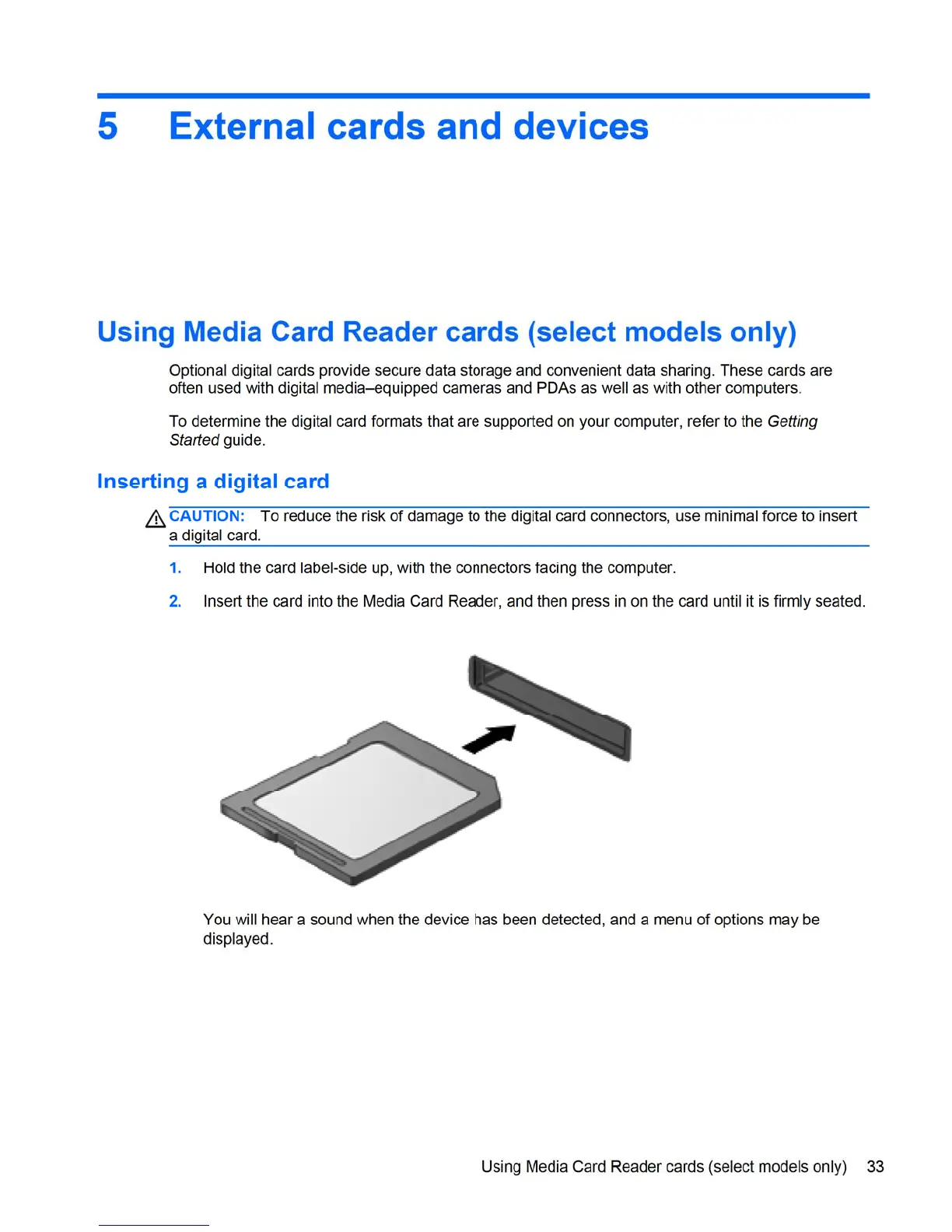 HP 8460p - 5 External Cards and Devices; Media Card Reader and PC Cards; ExpressCards and Smart Cards