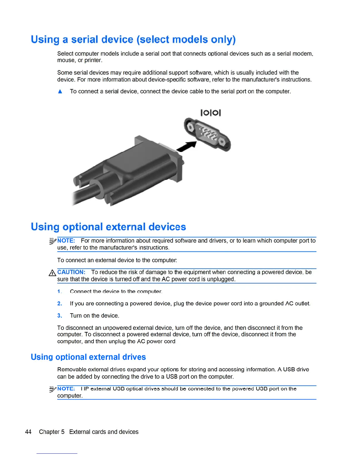 HP 8460p - Using a Serial Device; Using Optional External Devices
