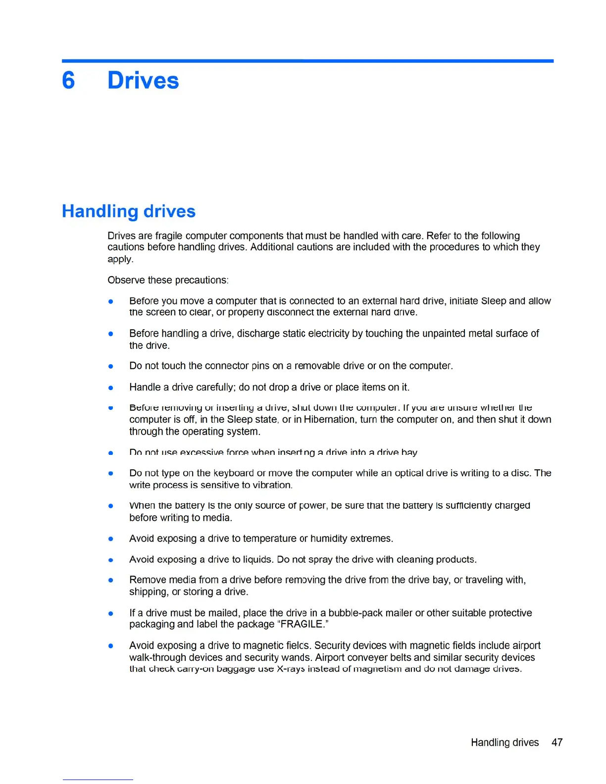 HP 8460p - 6 Drive Management; Hard Drive Handling and Maintenance; DriveGuard and Optical Drive Usage
