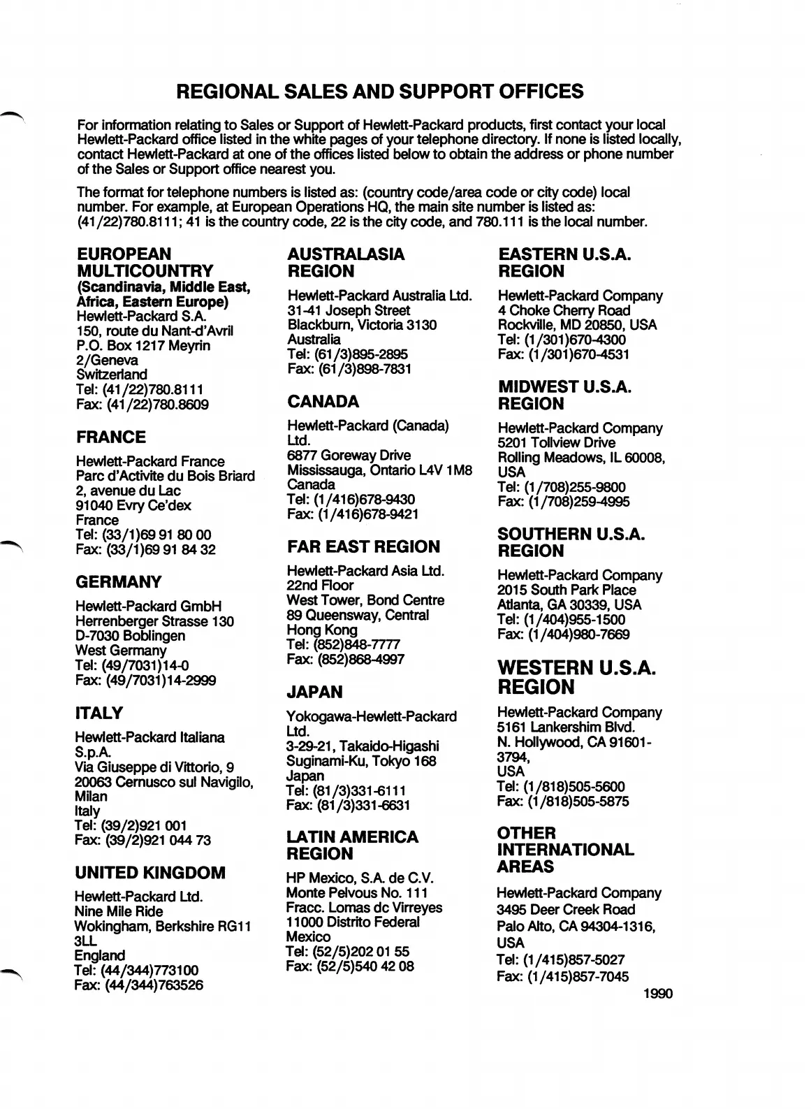 HP 8481A - Sales and Support Offices; Regional Contact Information