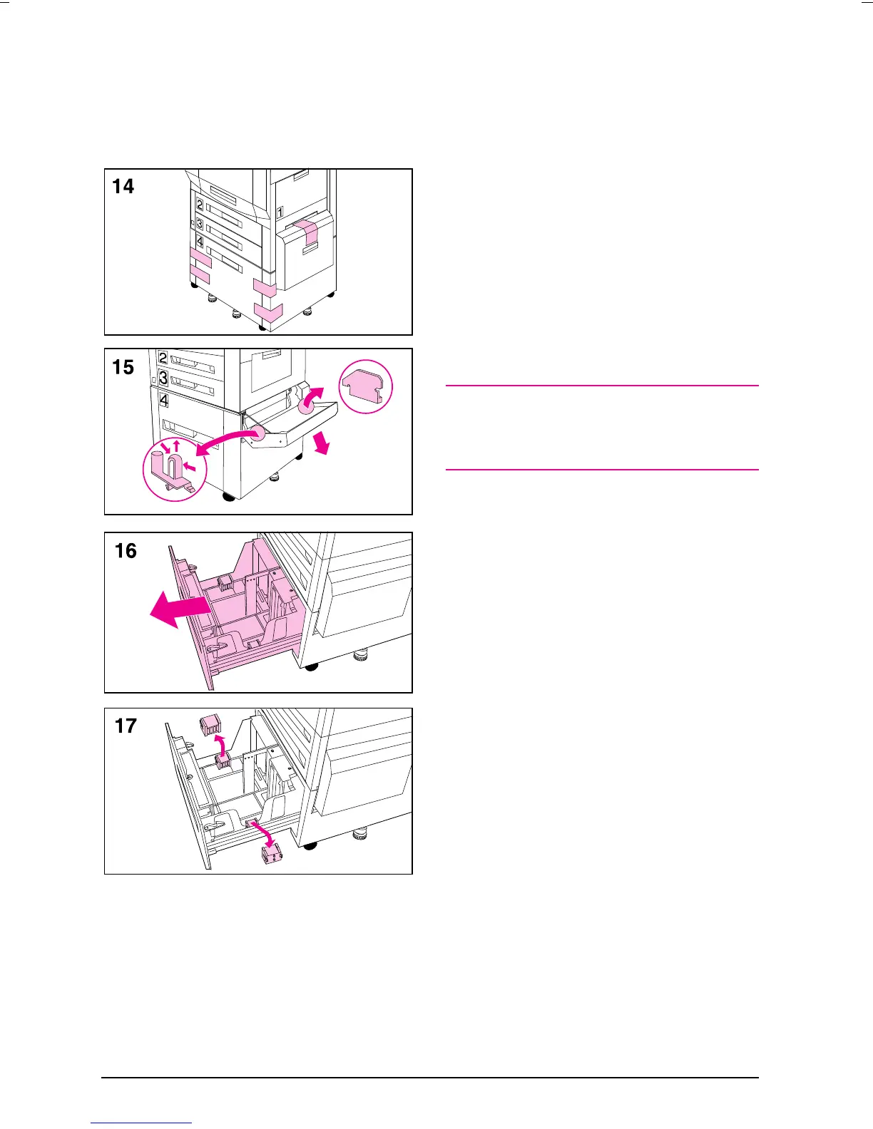 14 Remove the packing tape from tray 4.