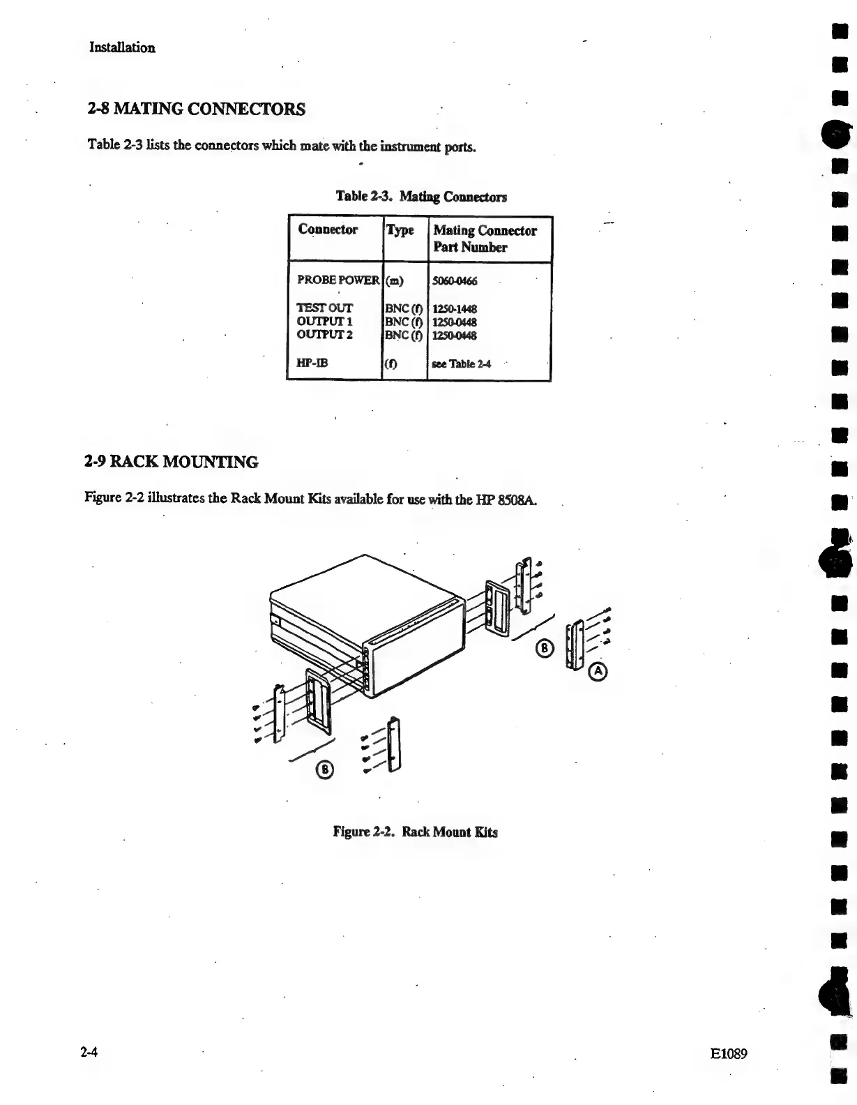HP 8508A - Mating Connectors; Rack Mounting