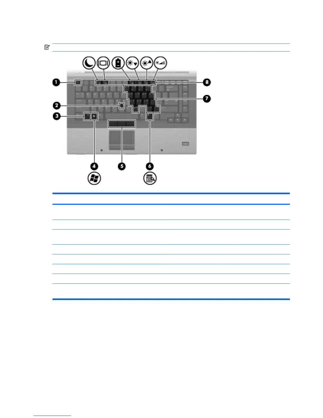 (6) Windows applications key Displays a shortcut menu for items beneath the pointer.