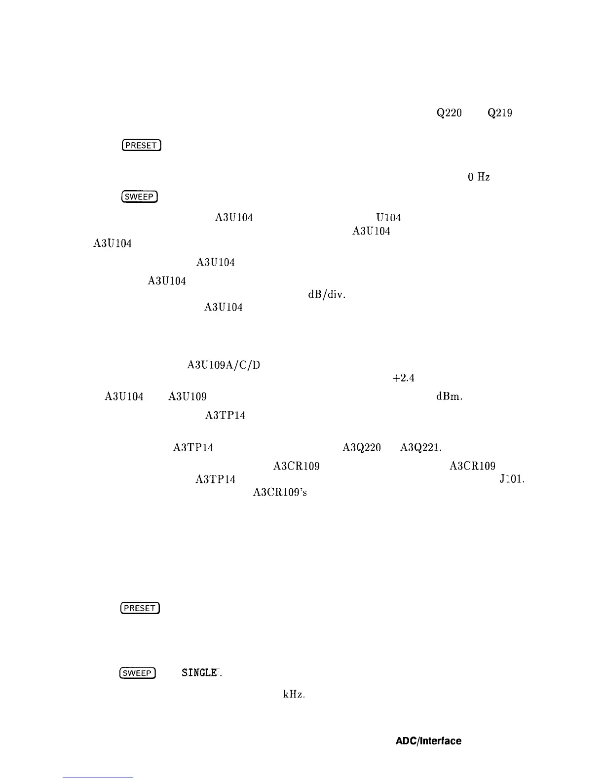the analyzer to 2 dB/div and check for a TTL high on A3U104 pin 10 and a TTL low on