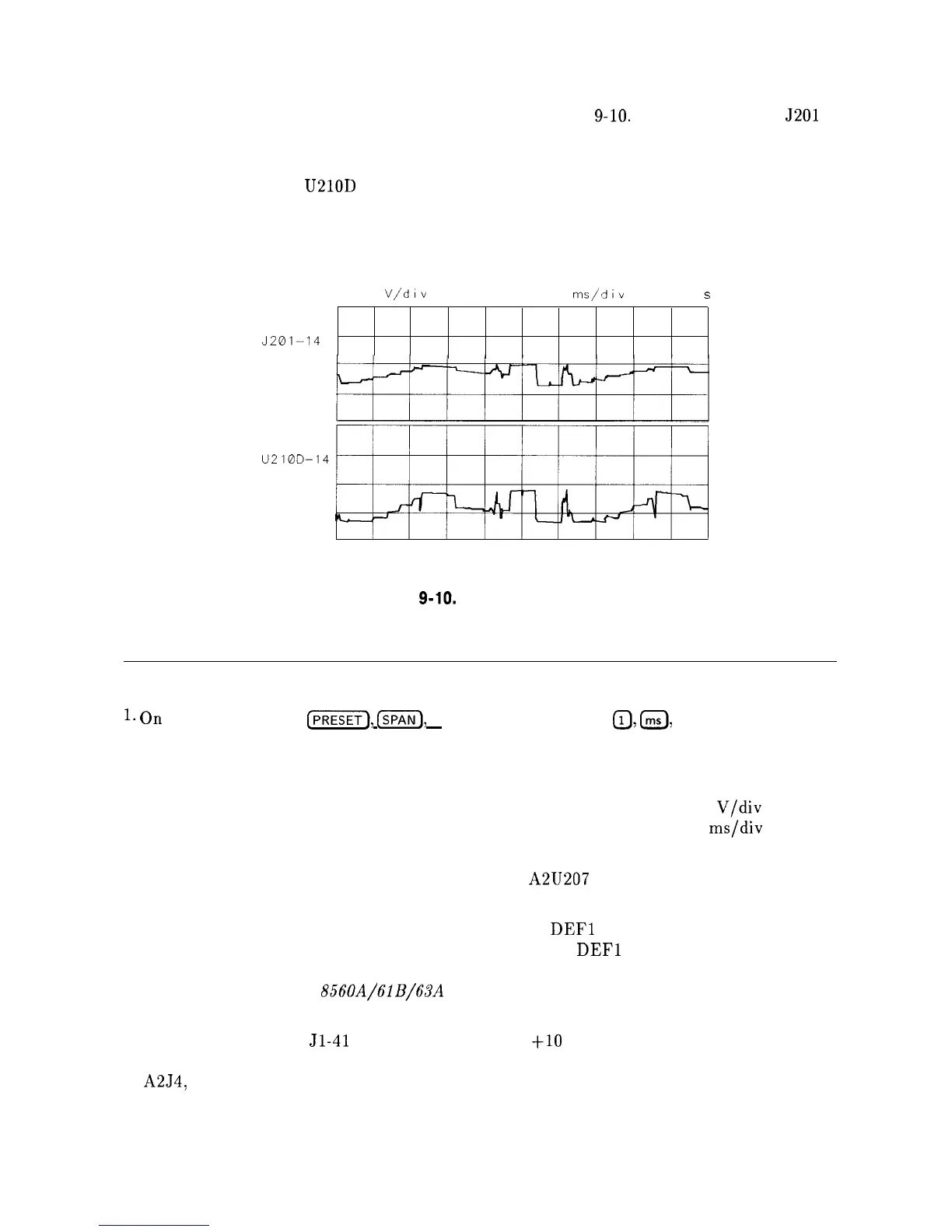 4. The display should be similar to Figure 9-11 except that the untriggered trace should