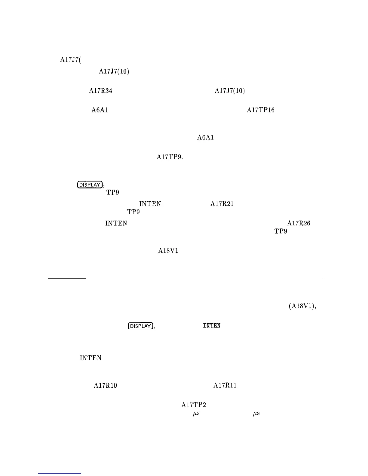 7. The nominal A17J7(10) voltage is -1600 Vdc, but the CRT will function with this voltage