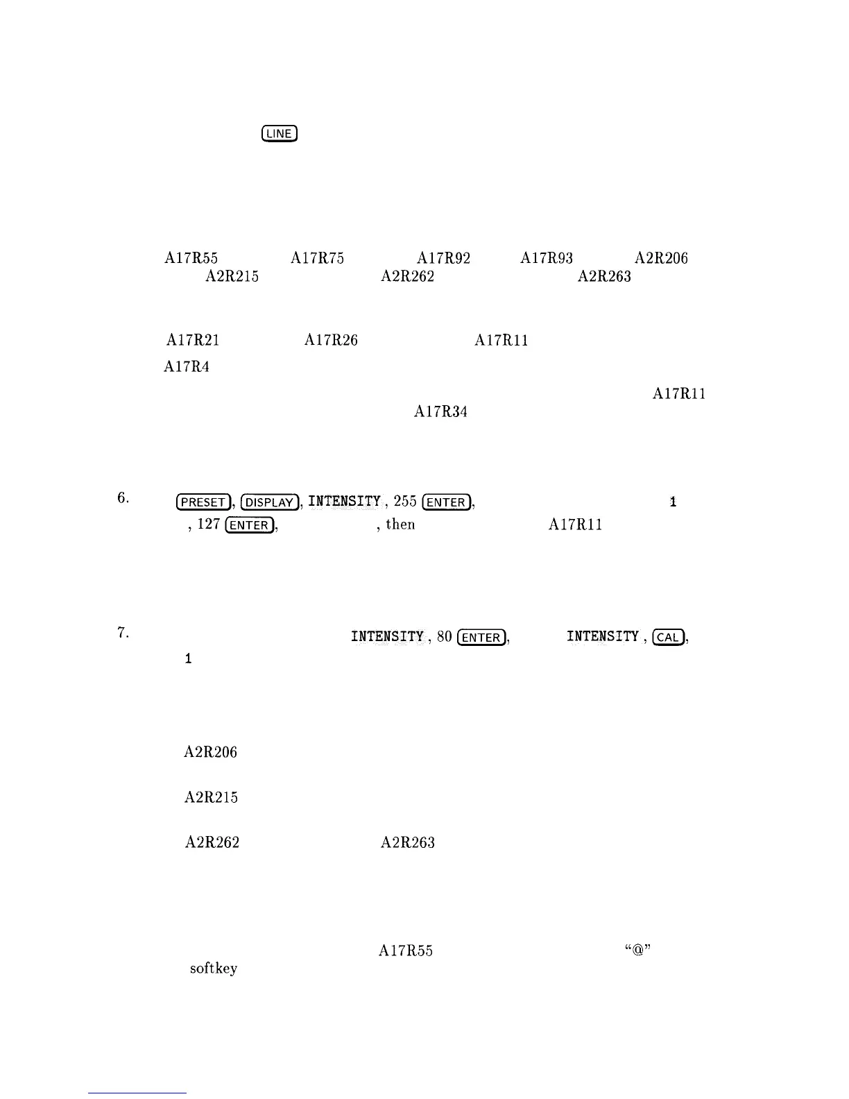 2. Set A17R55 X GAIN, A17R75 Y GAIN, A17R92 DDD, A17R93 ASTIG, A2R206 DGTL