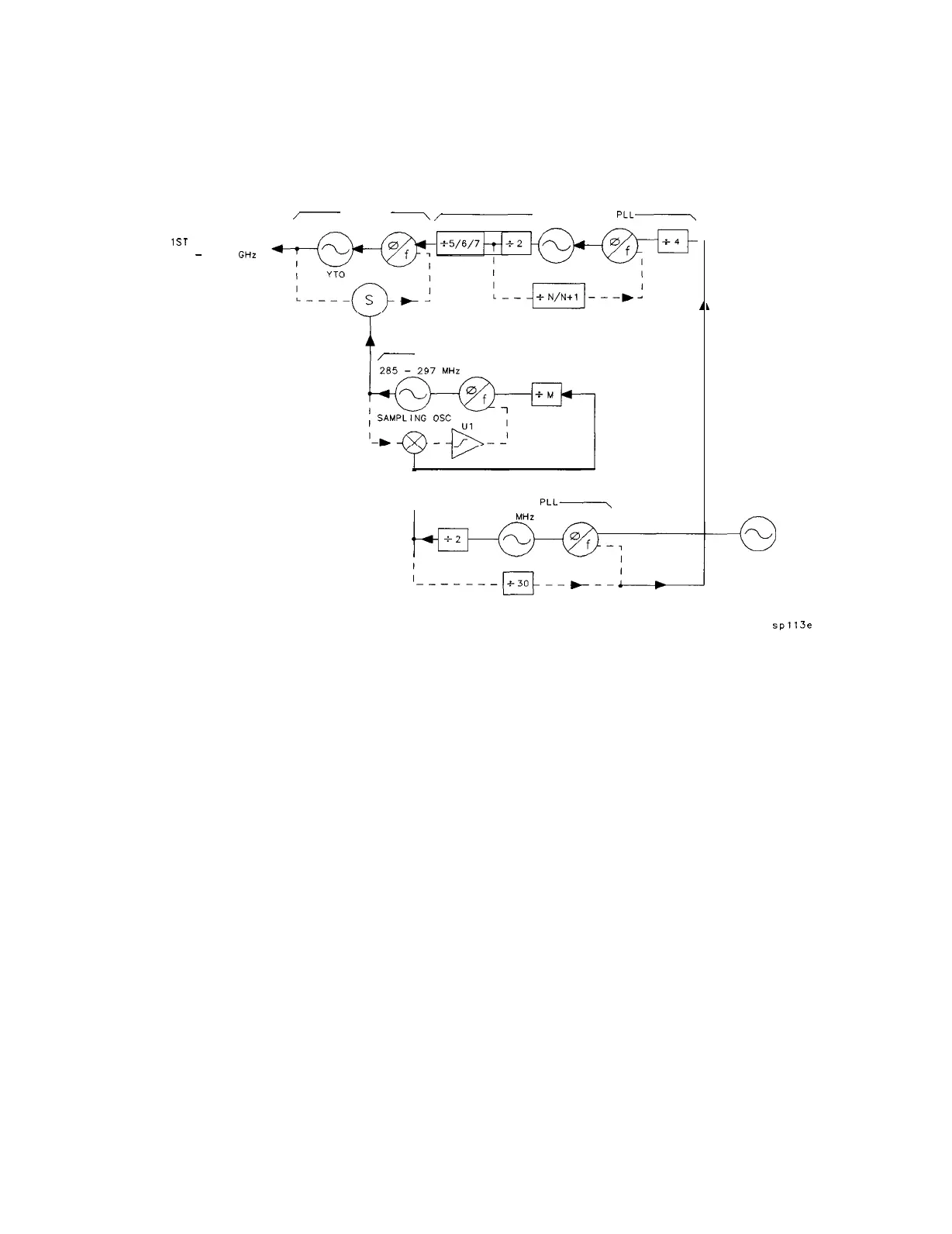 The 285 MHz to 297.2 MHz sampling oscillator is used to sample the YTO. The frequency