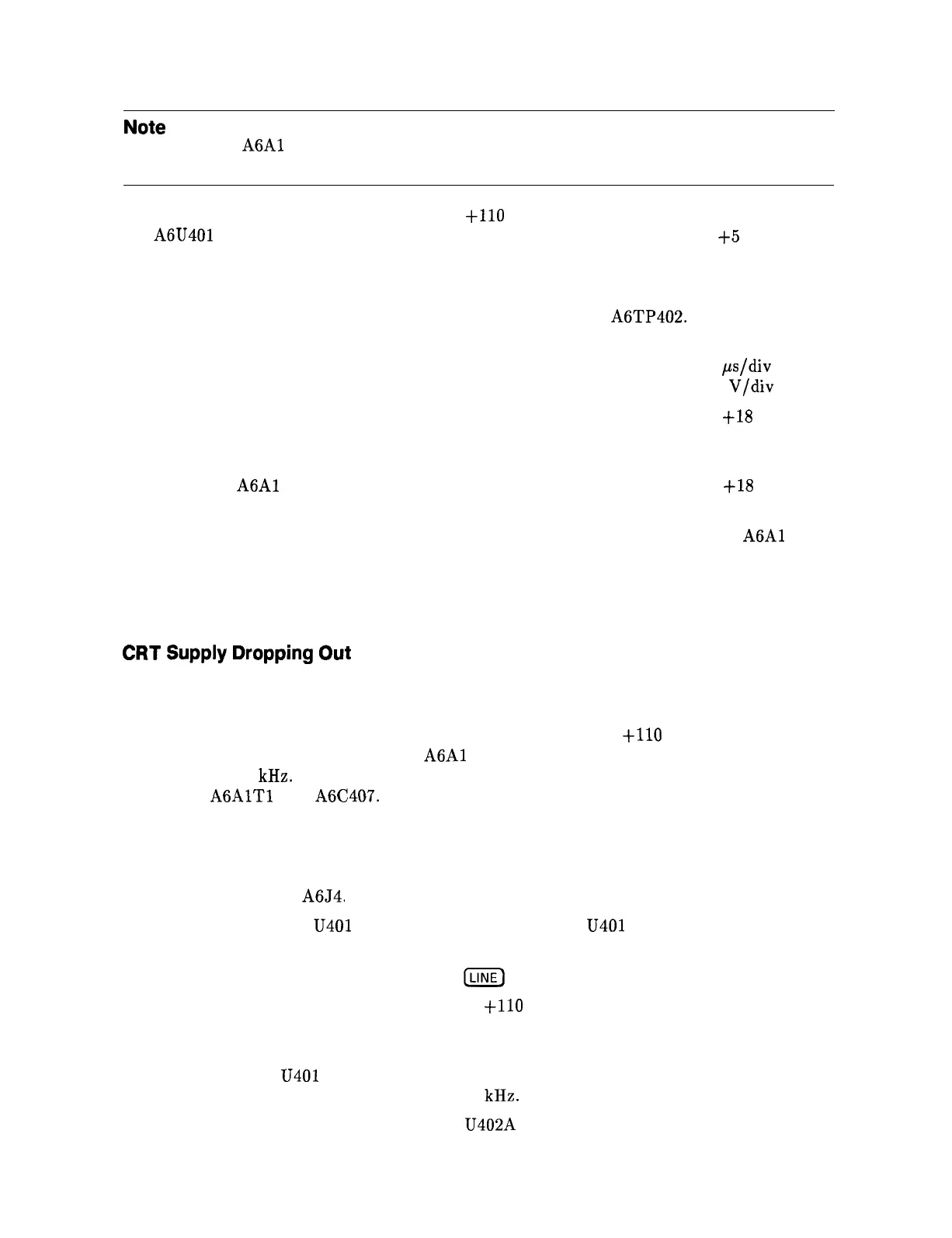 11. If the TP403 waveform has pulses similar to those on TP402, the A6 power supply is