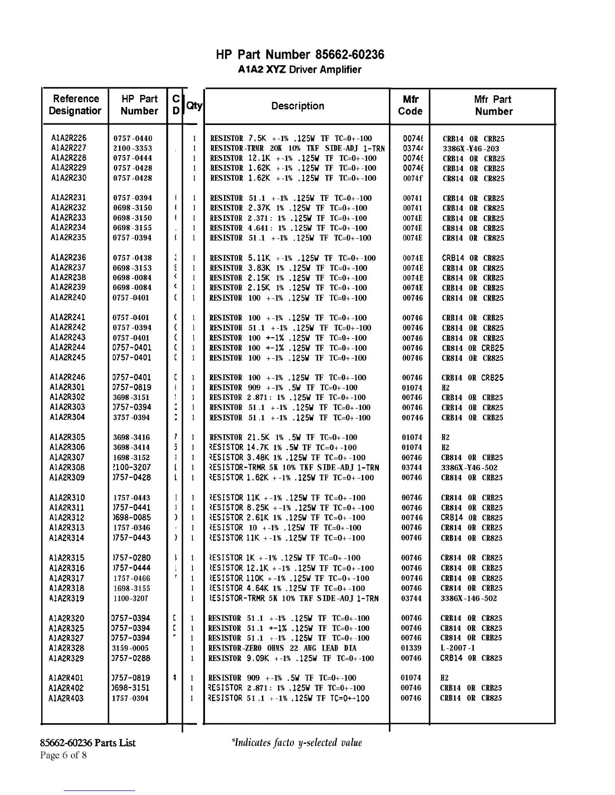 85662-60236 Parts List