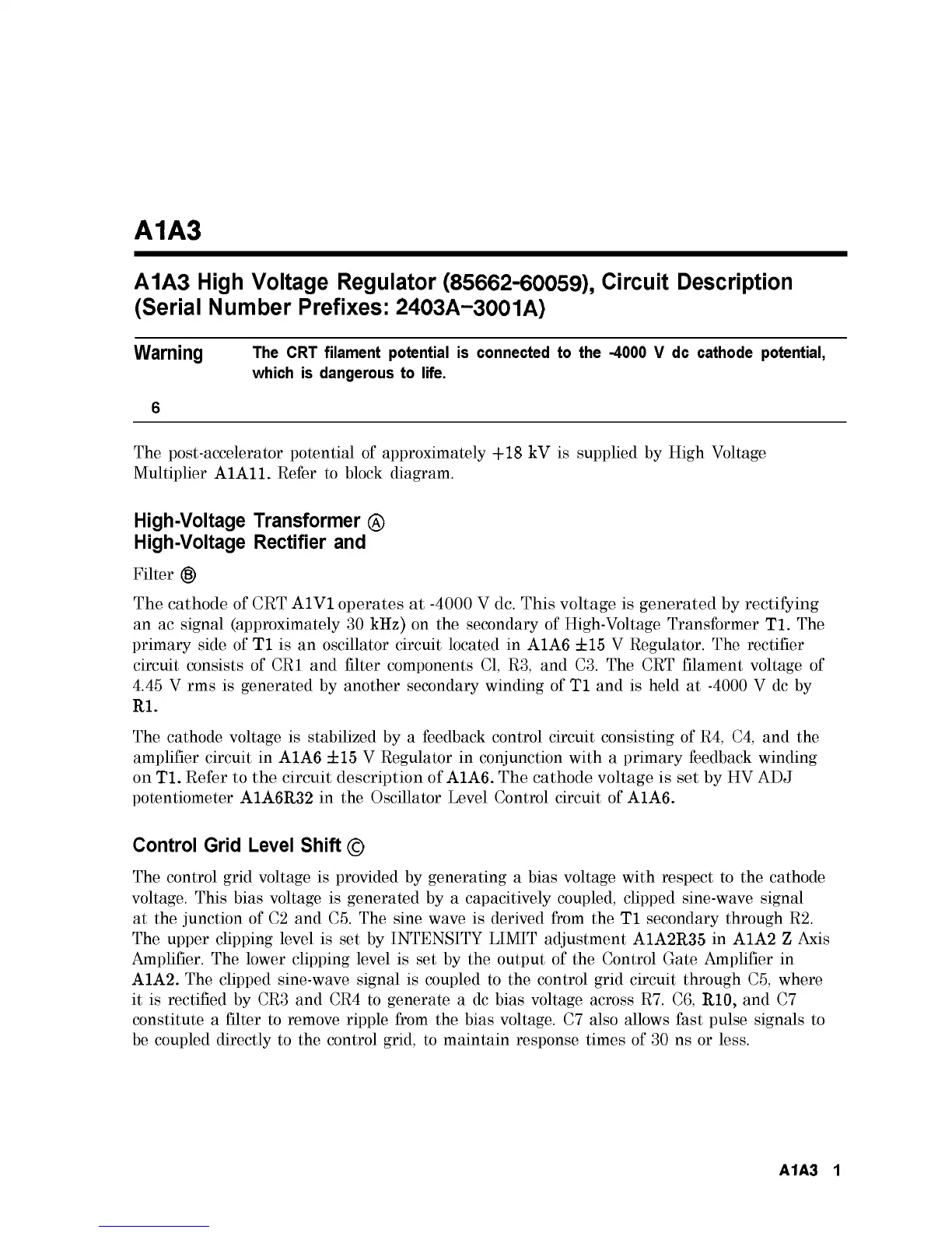 A1A3 High Voltage Regulator (85662-60059), Circuit Description