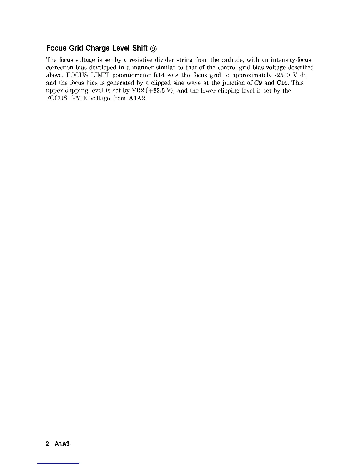 above. FOCUS LIMIT potentiometer R14 sets the focus grid to approximately -2500 V dc,