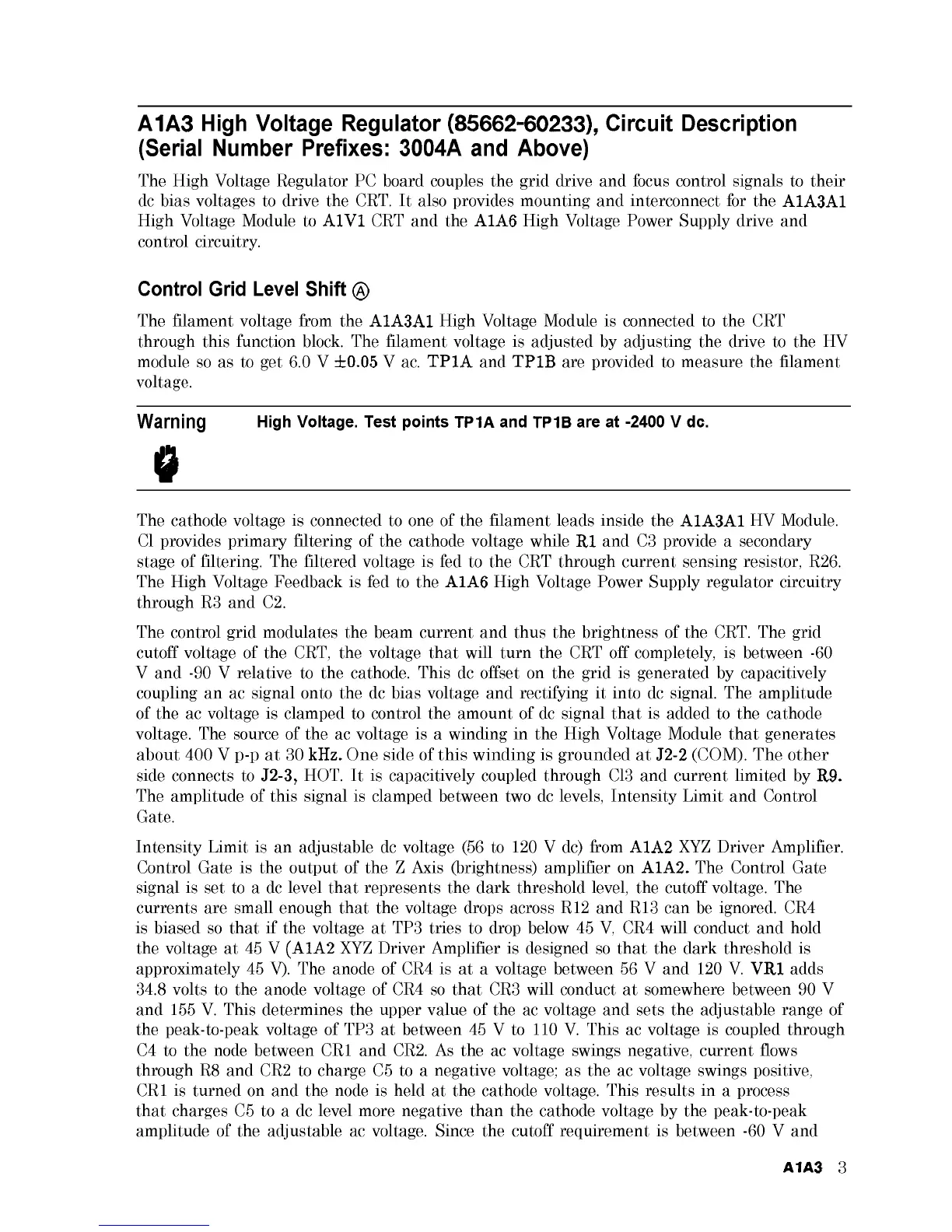 A1A3 High Voltage Regulator (85662-60233), Circuit Description