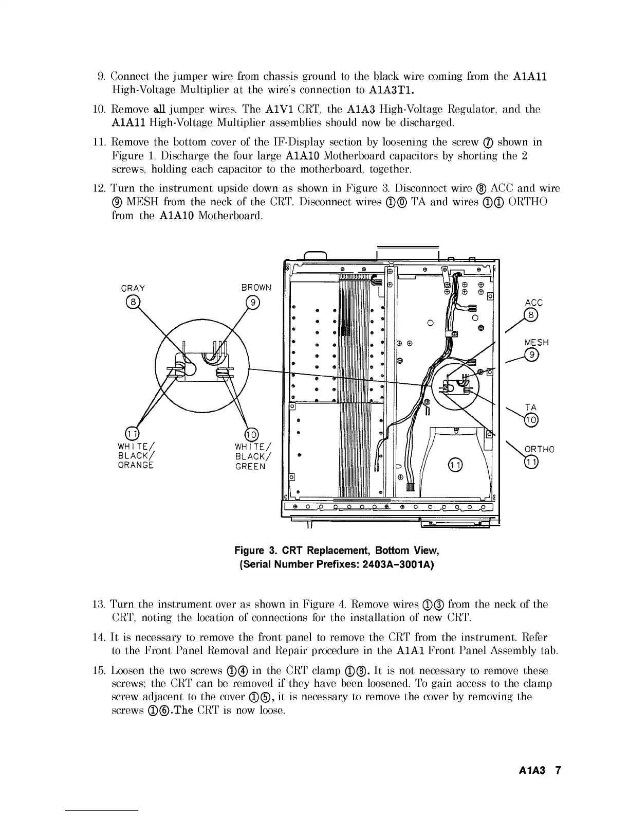 Remove all jumper wires. The A1V1 CRT, the A1A3 High-Voltage Regulator, and the