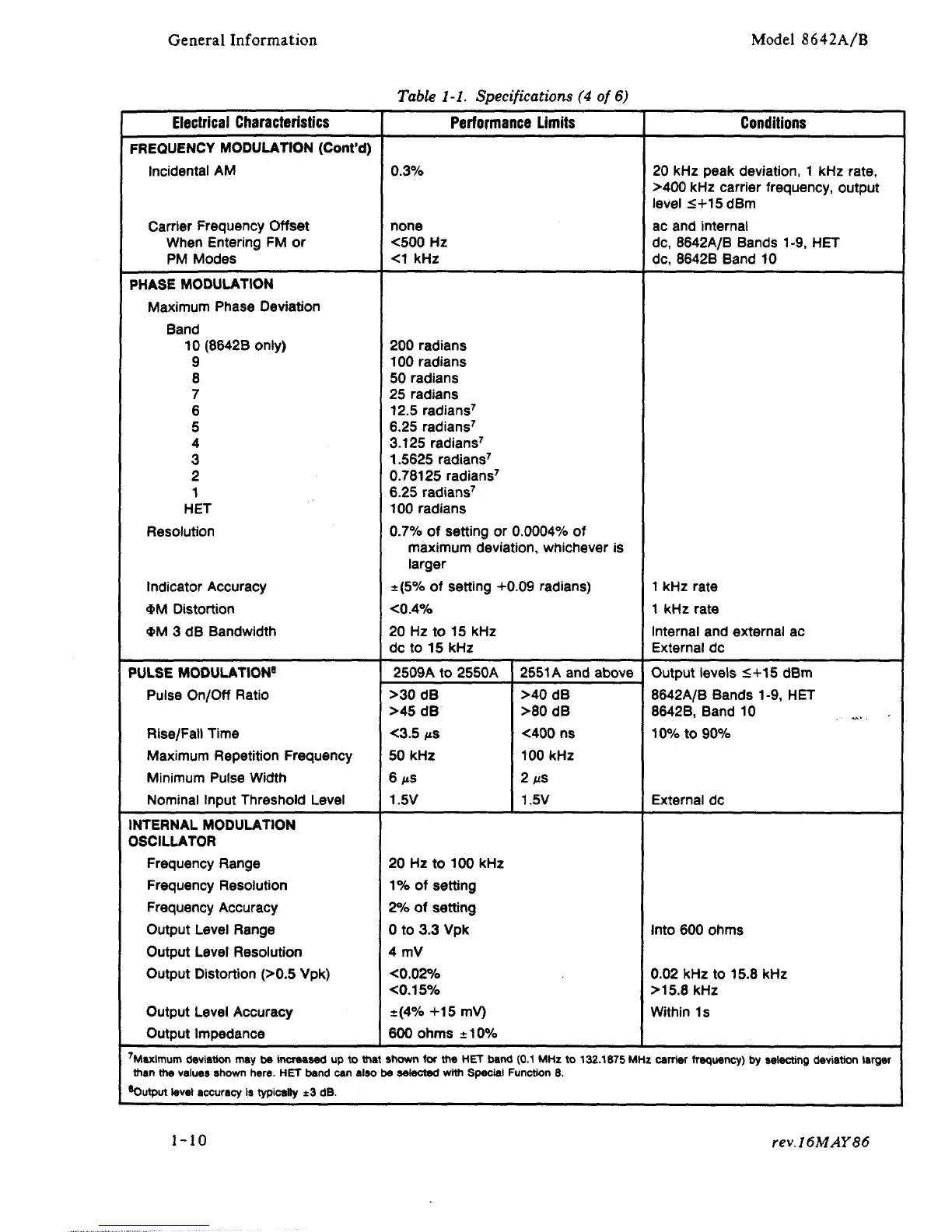 Table 1-1. Specifications (4 of 6)
