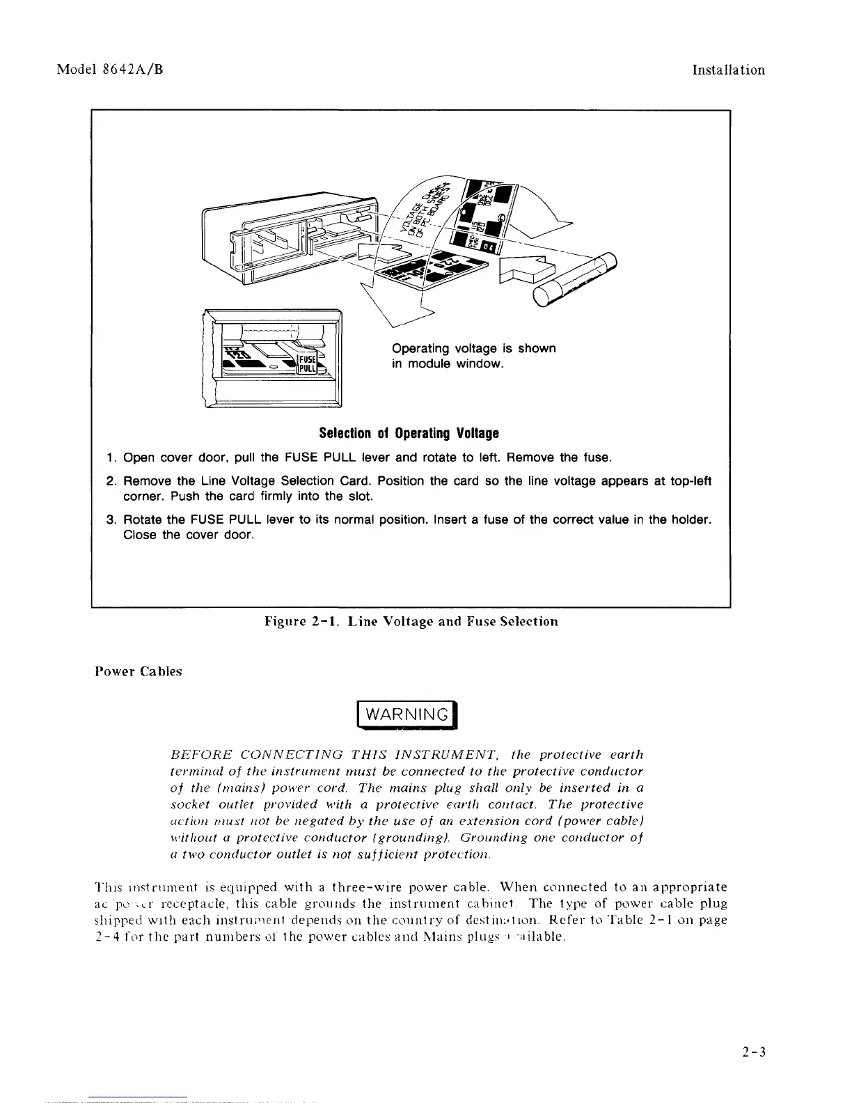 ac po-tr receptacle, this cable grounds the instrument cabinet. The type of power cable plug