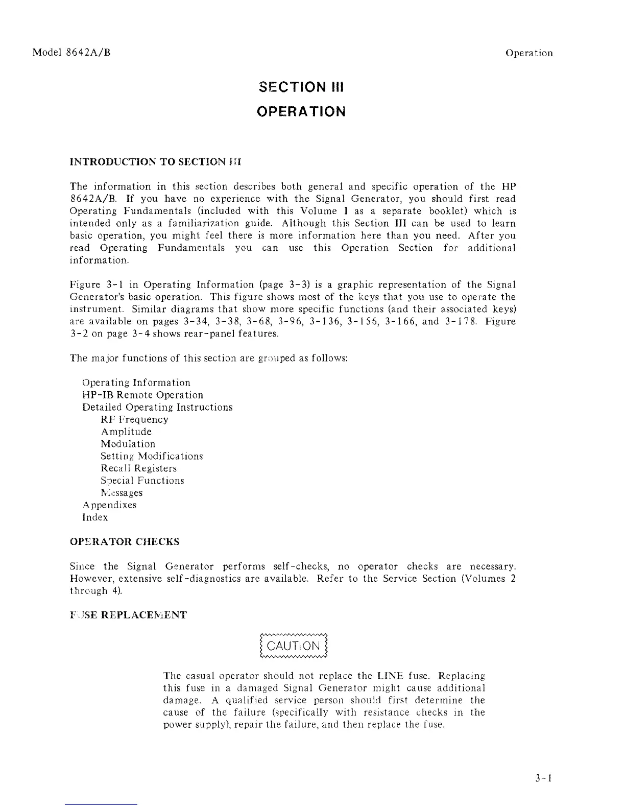 Since the Signal Generator performs self-checks, no operator checks are necessary.