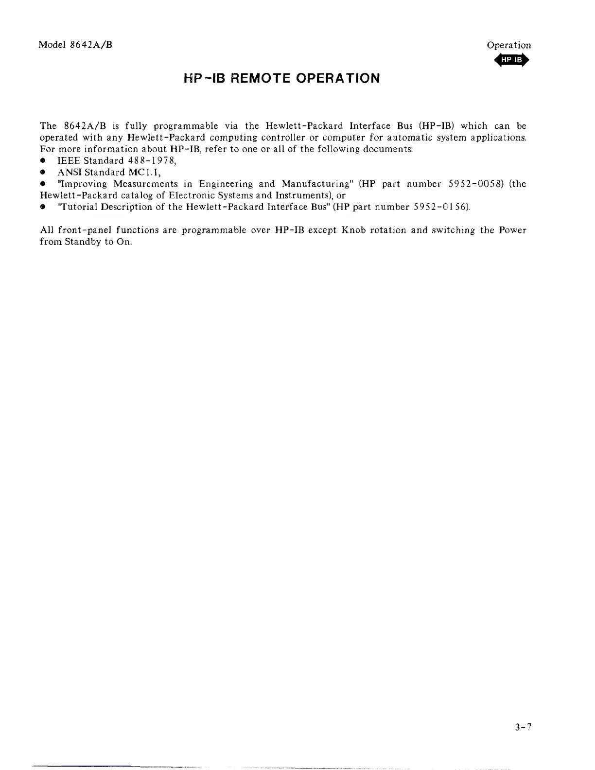 The 8642A/B is fully programmable via the Hewlett-Packard Interface Bus (HP-IB) which can be