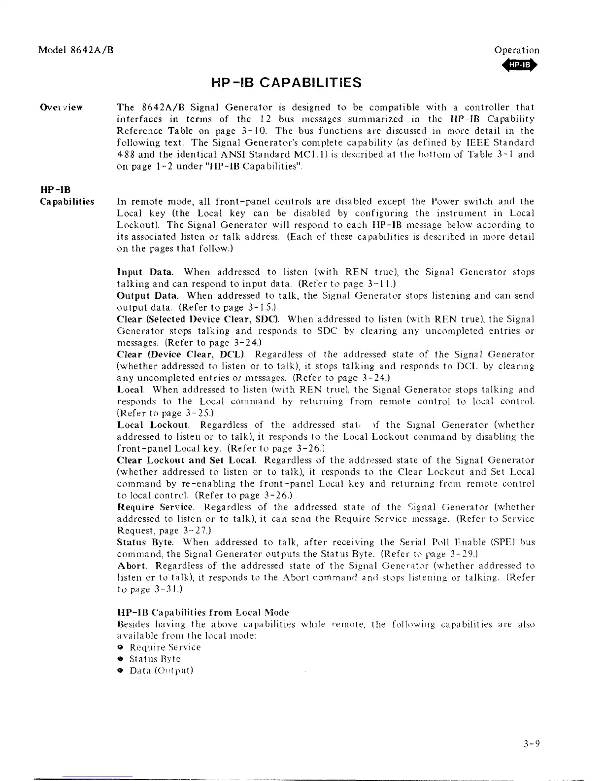 interfaces in terms of the 12 bus messages summarized in the HP-IB Capability